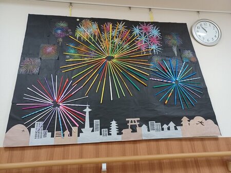 色とりどりの画用紙をぺたぺた貼ってくださっています。