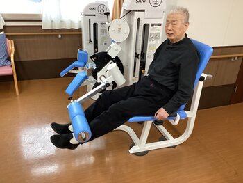 雪がちらつく季節になり、寒さが身に沁みますが、当施設のご入居者は今日も頑張って、訓練をしていただいております。
