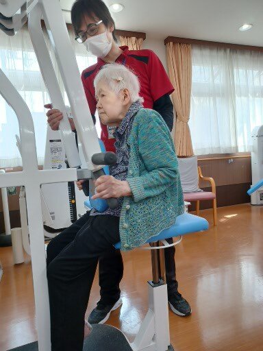 ちょっと動くだけでも、身体がべたつき嫌になりますが、ご入居者にもやれる範囲で機能訓練を受けていただいております。