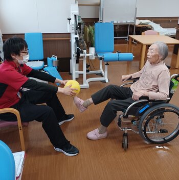 早速ですが、寒さに負けず、風邪にも負けない元気なご入居者の機能訓練のご様子をご覧ください。