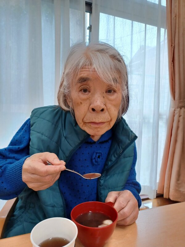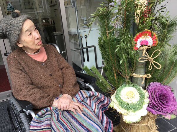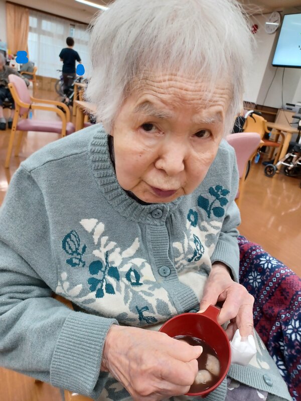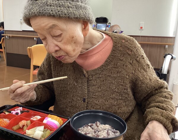 ご入居者の皆さまに見守られながら代表して職員が割ります!