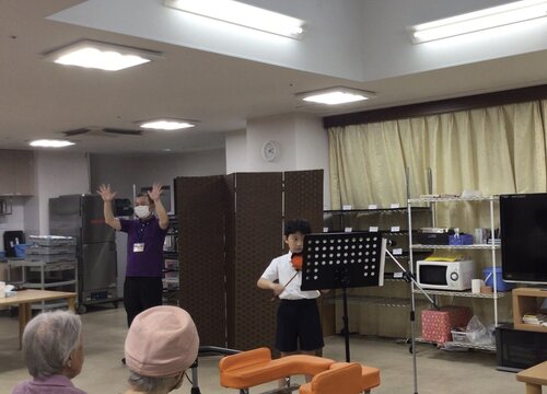 音楽と話芸でご入居者や職員の目を釘付けにしていました(#^.^#)