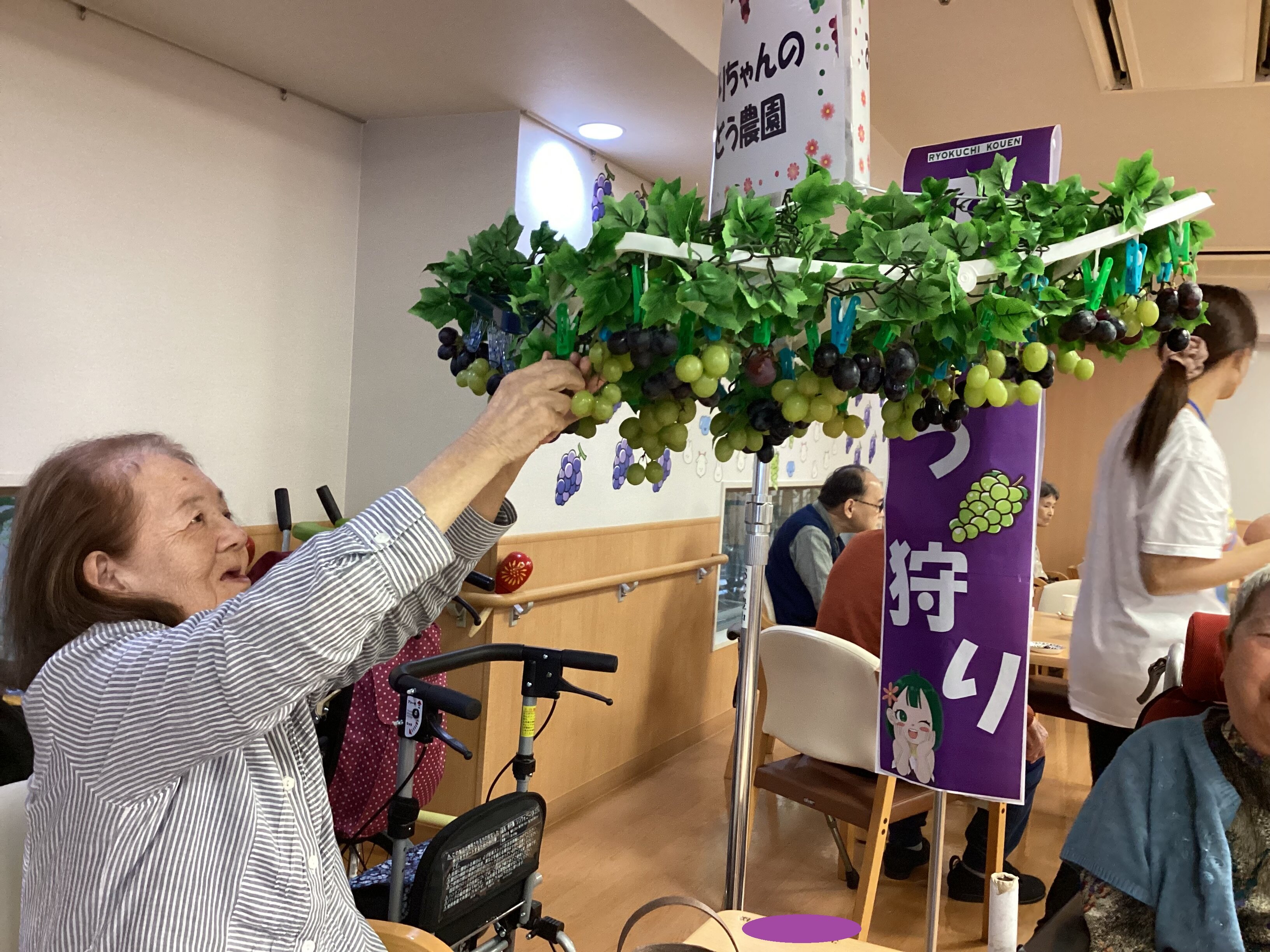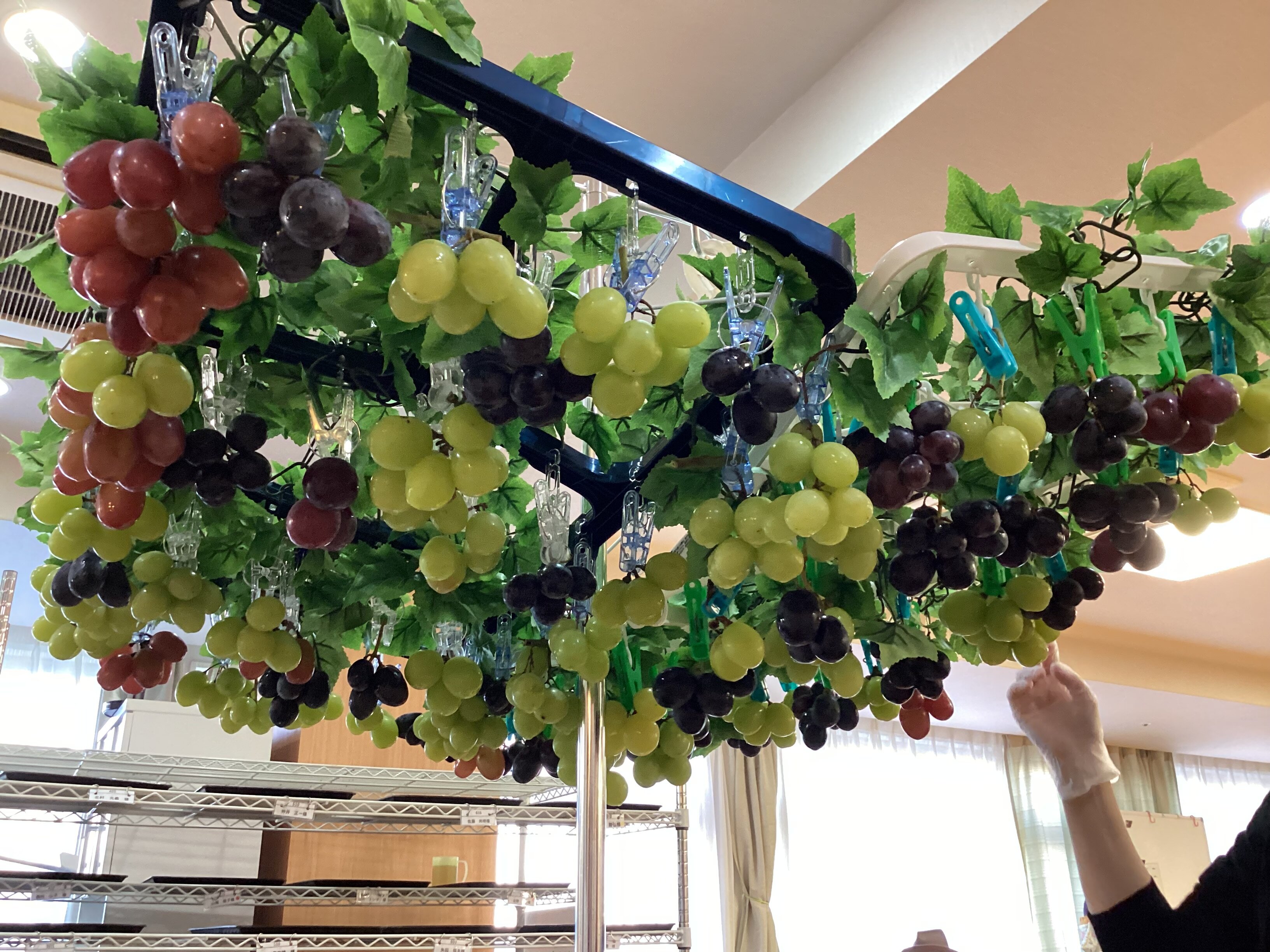 室内でのぶどう狩り...