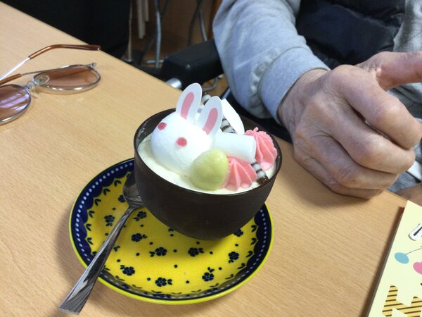 お誕生日であったご入居者には大きな栗のケーキやかわいいうさぎのプリン、