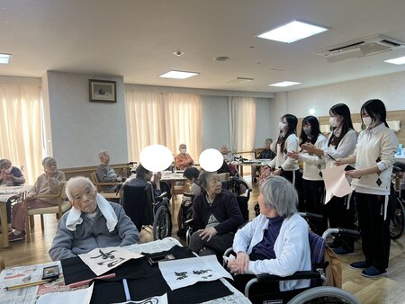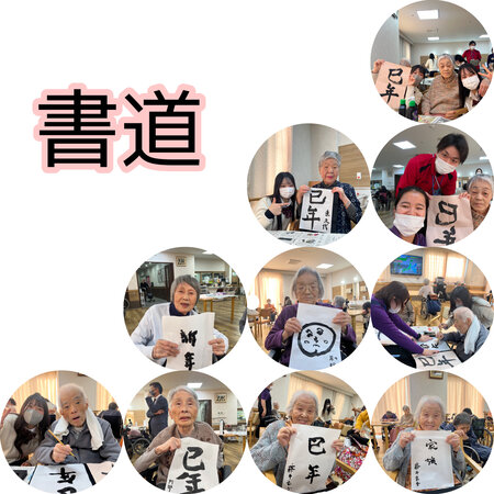書き初めをご入居者と一緒に行いました!!