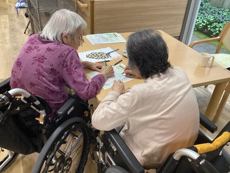 今日は塗り絵をお二人で協力して行っている姿を見かけました^^