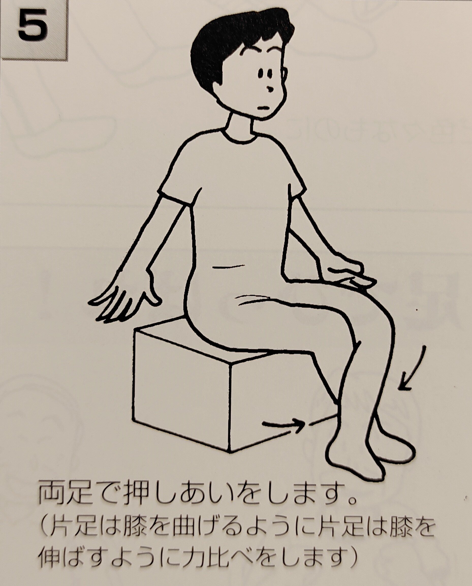 押し合う時間は10秒程度で10回(片足5回ずつ)実施してください!!