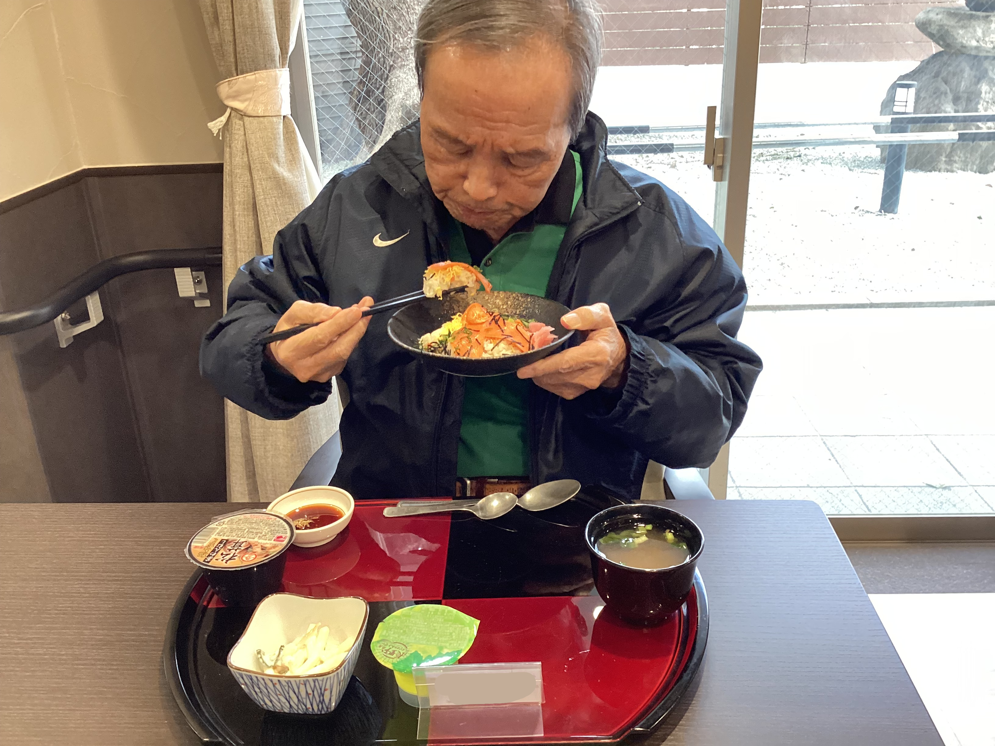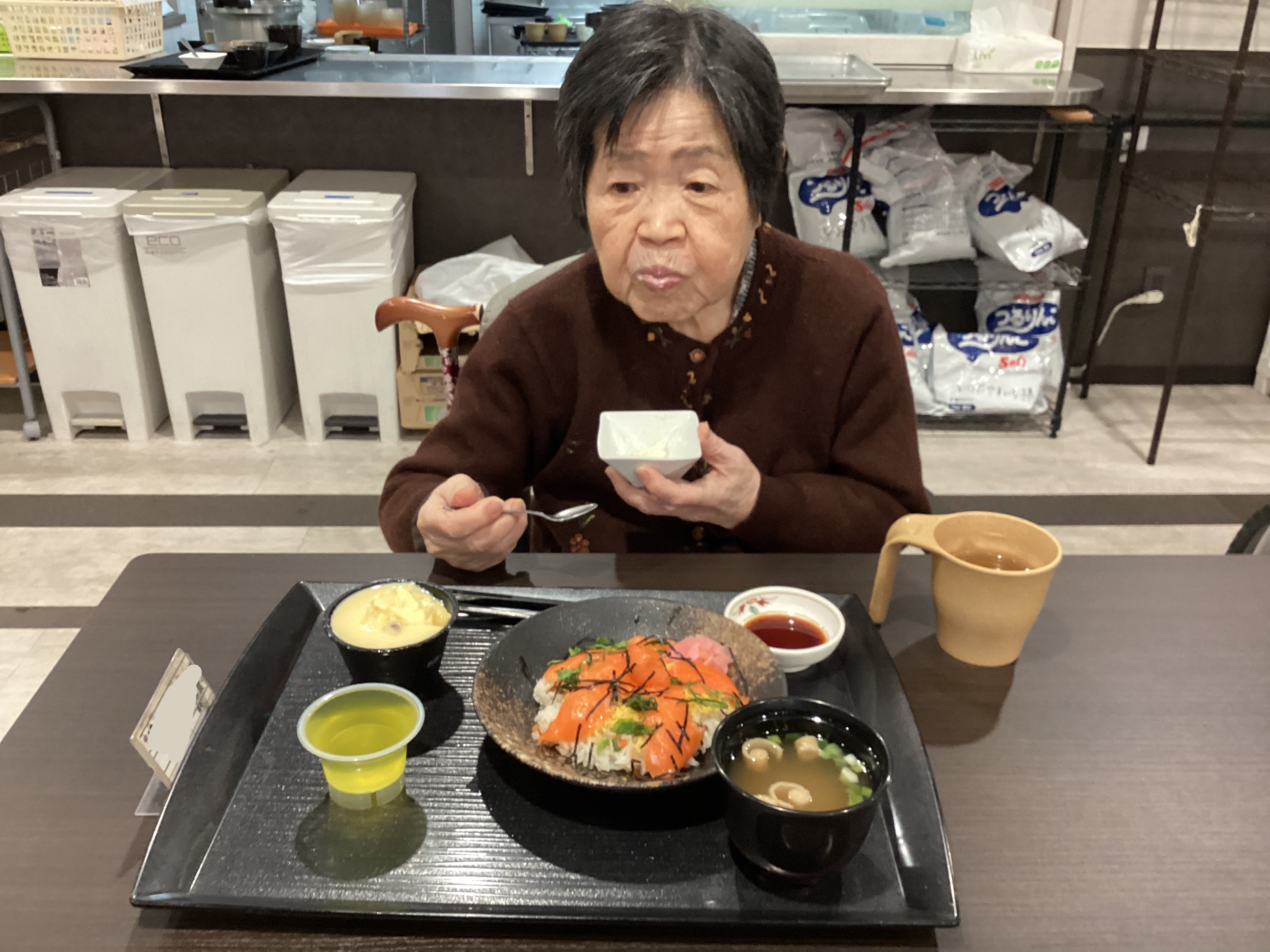 「お刺身はやっぱり特別感があるね」「新鮮でとろけるよ」と、皆さま自然と笑みがこぼれていらっしゃいました。刺身は噛む力が弱くなった方でも食べやすく栄養価も高いため、当施設でも非常に人気のあるメニューなんです(^^♪