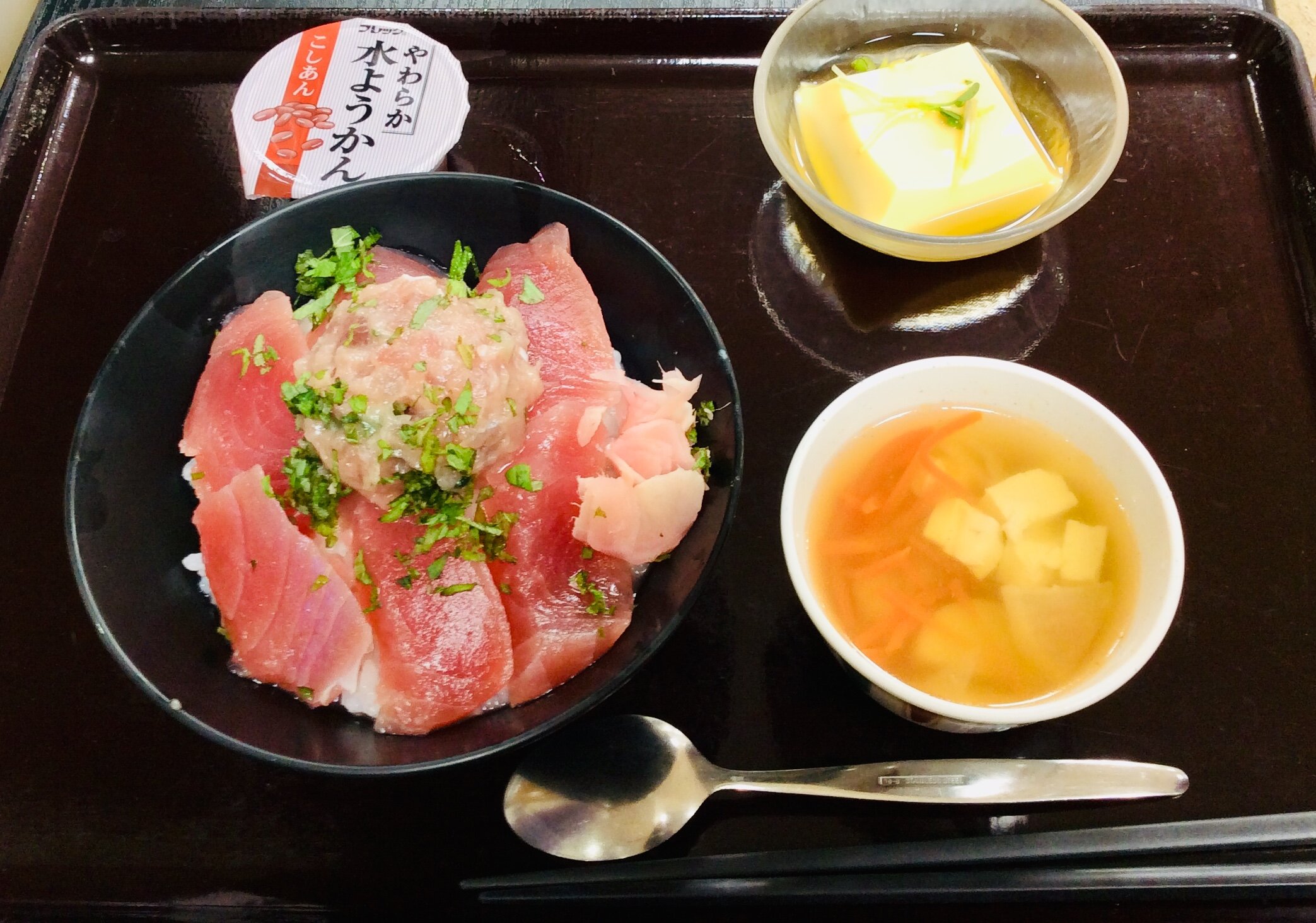 昨日の昼食は、ごちそうメニューの『まぐろ丼』でした。