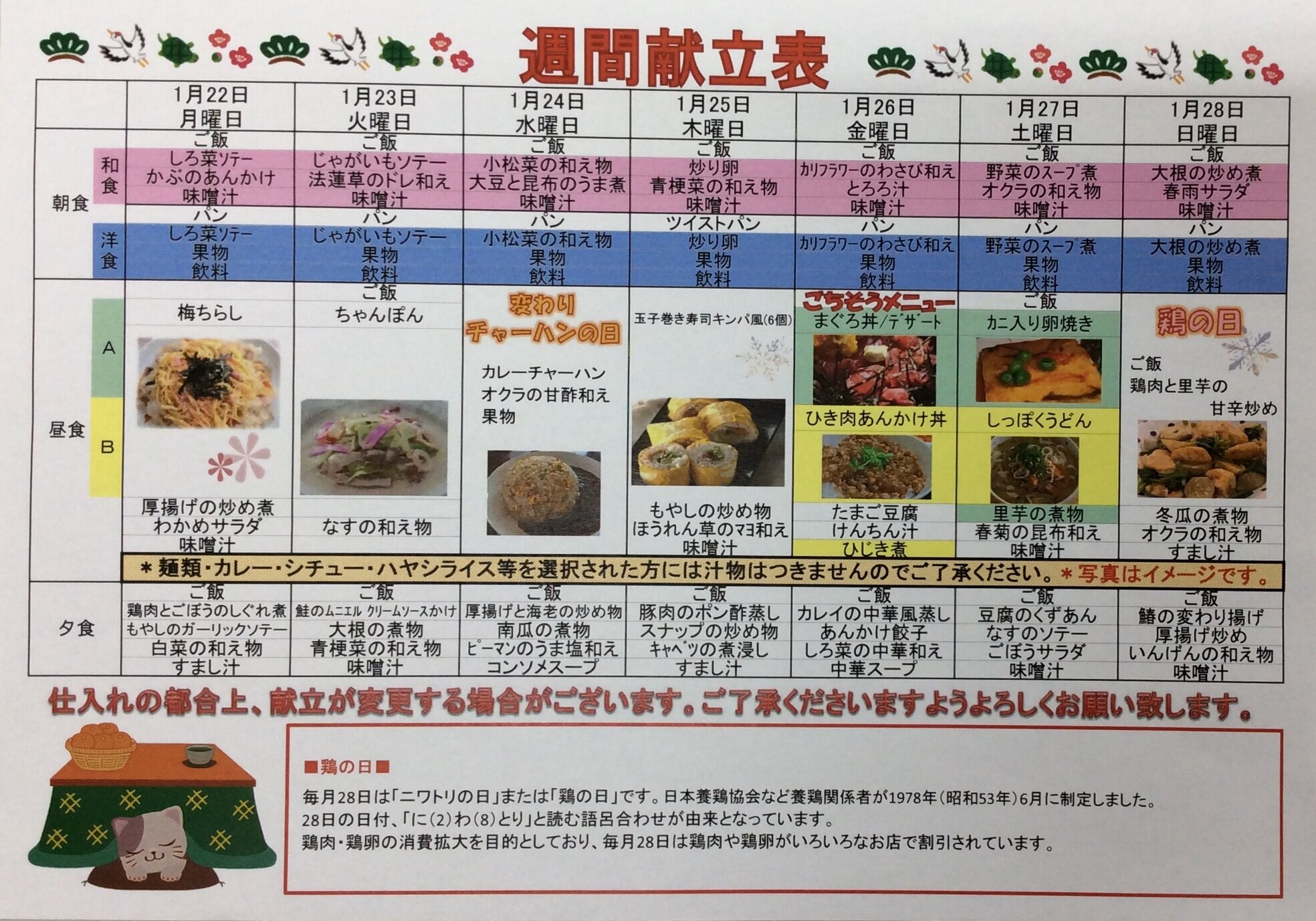 スーパー・コート大東では、献立表を毎週ブログでご紹介しています。