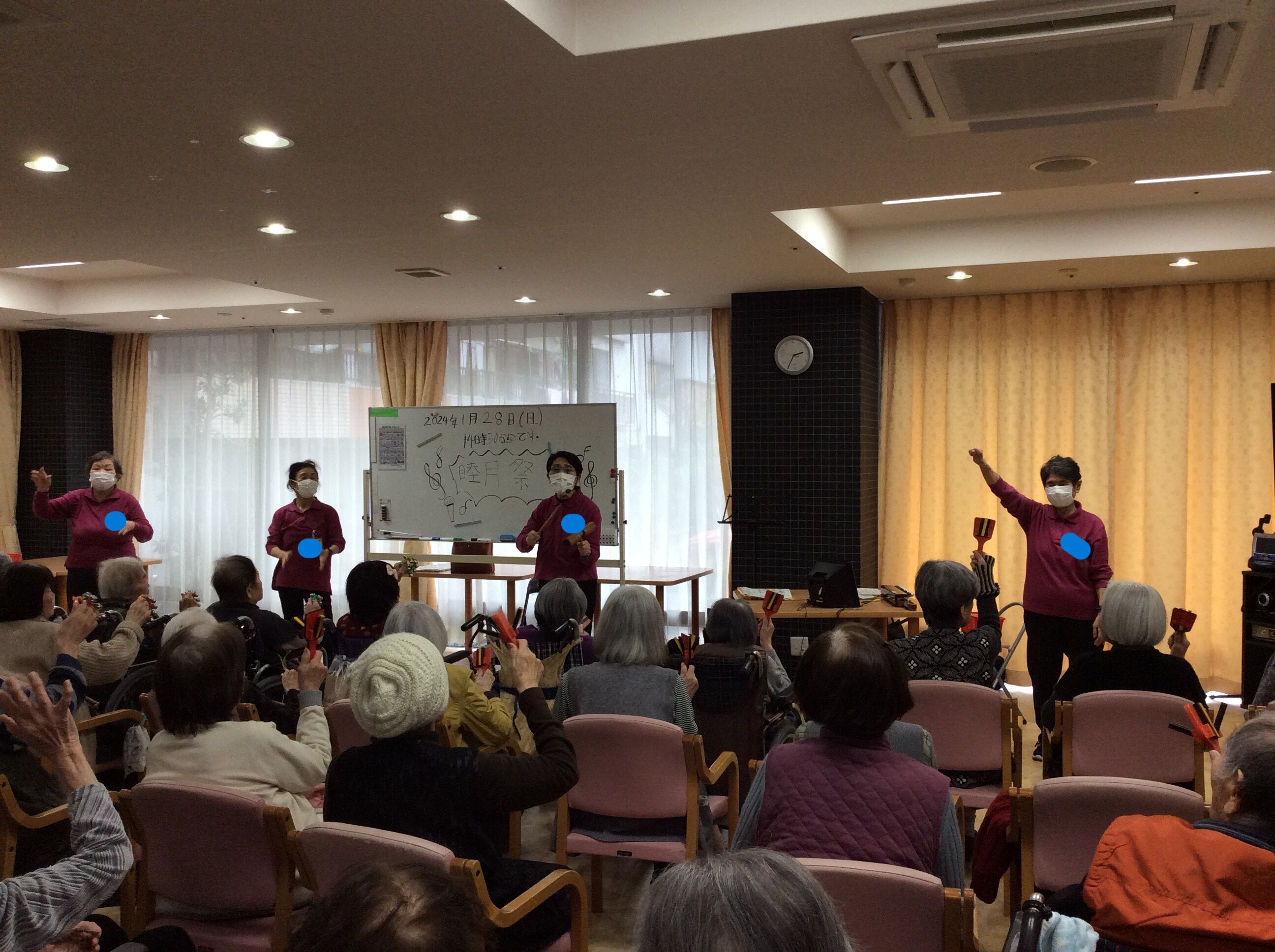 ご入居者の皆さんにも楽器を持って演奏していただきました!
