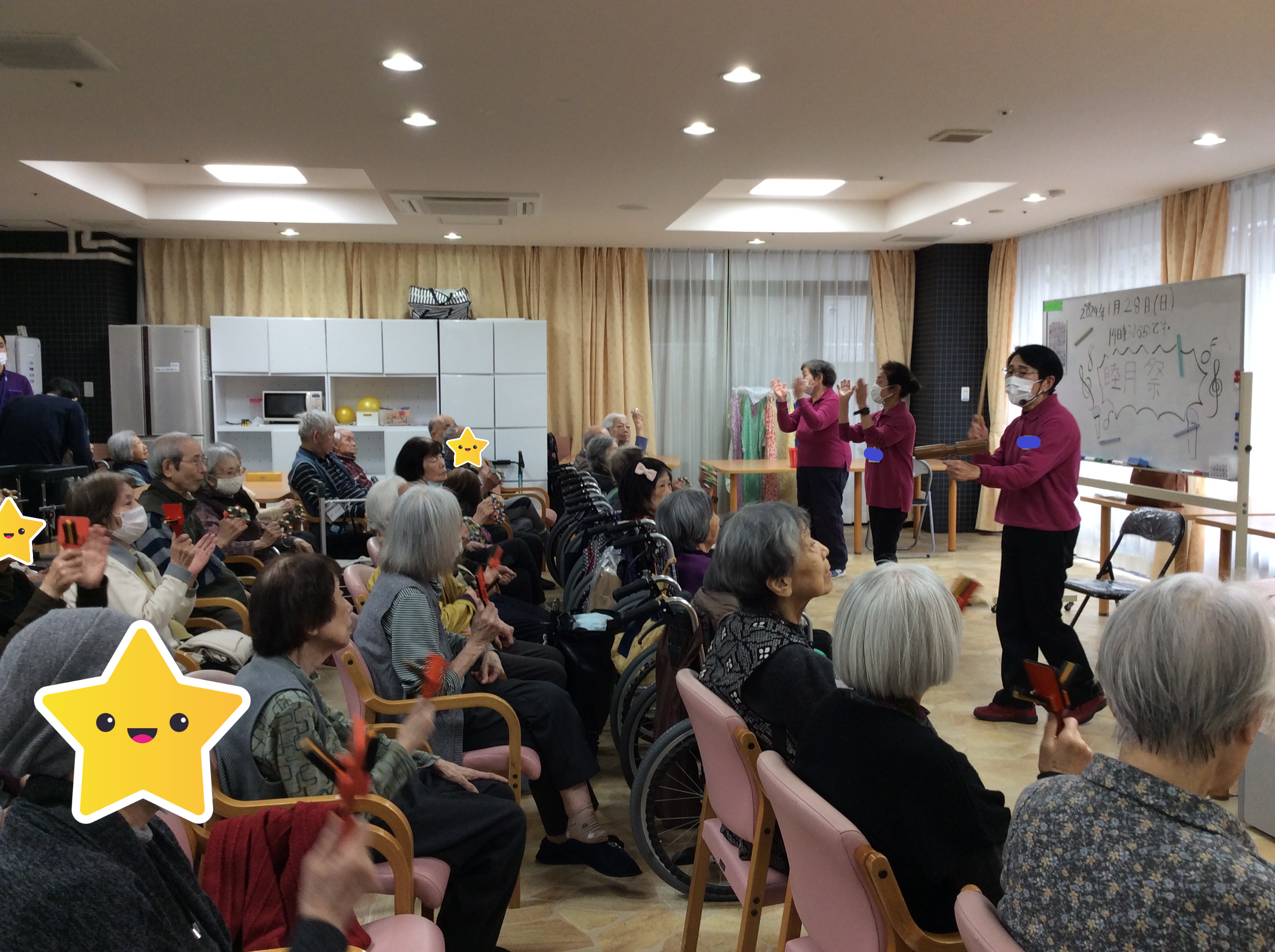 音楽療法を行ってくださったのは、毎度お世話になっています〈うきうきわくわく音心の会〉の皆様です!