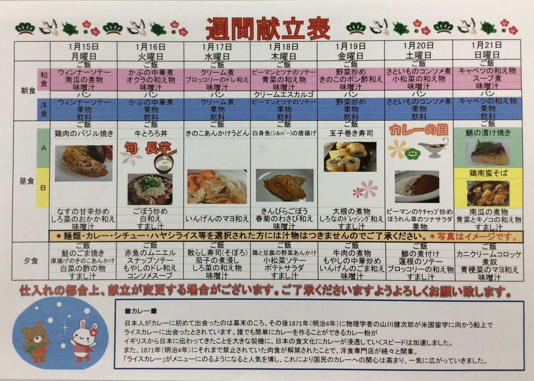 1/15~1/21の献立表をご紹介いたします。