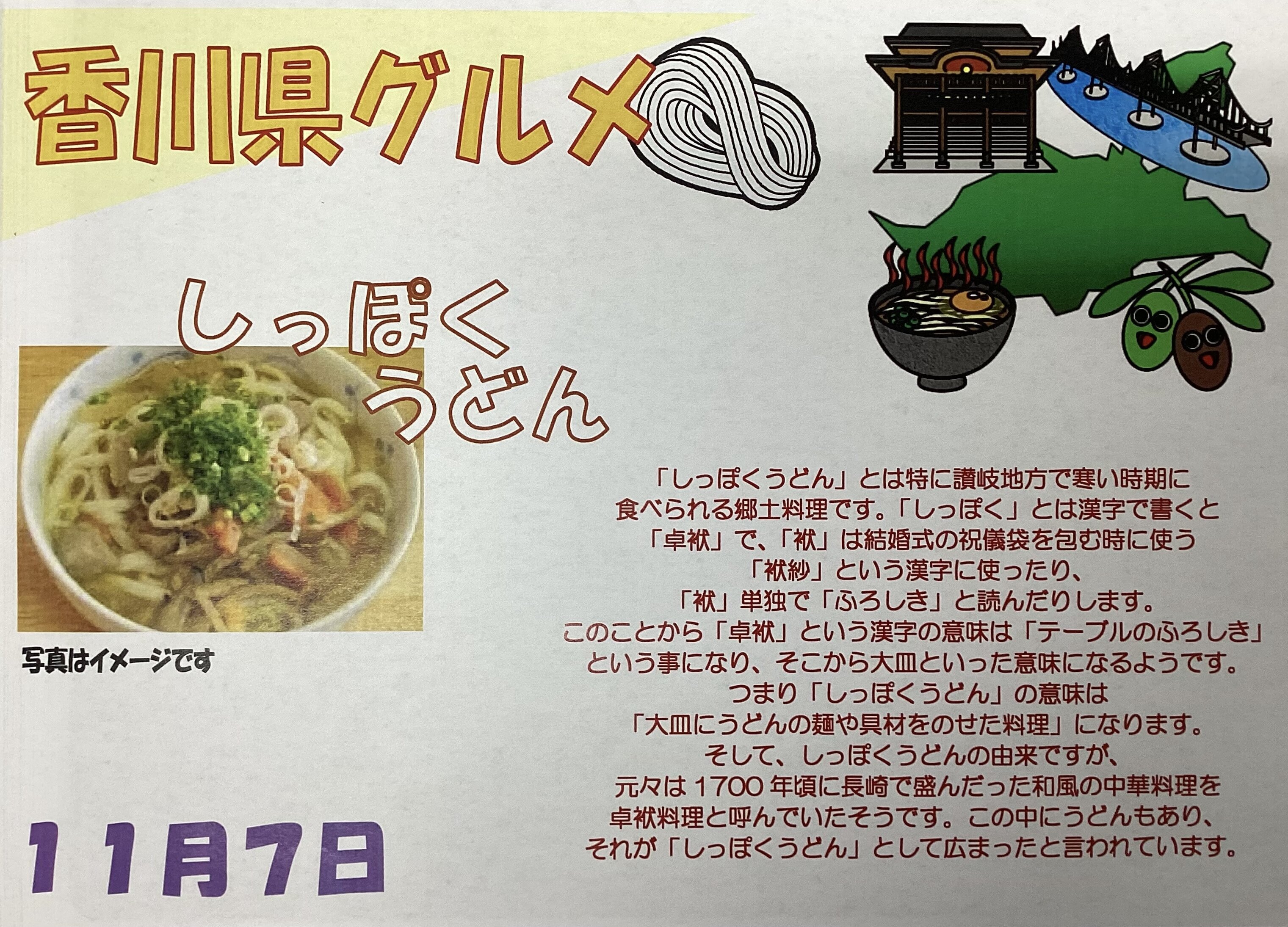 11/7㈫は、香川グルメ『しっぽくうどん』です。