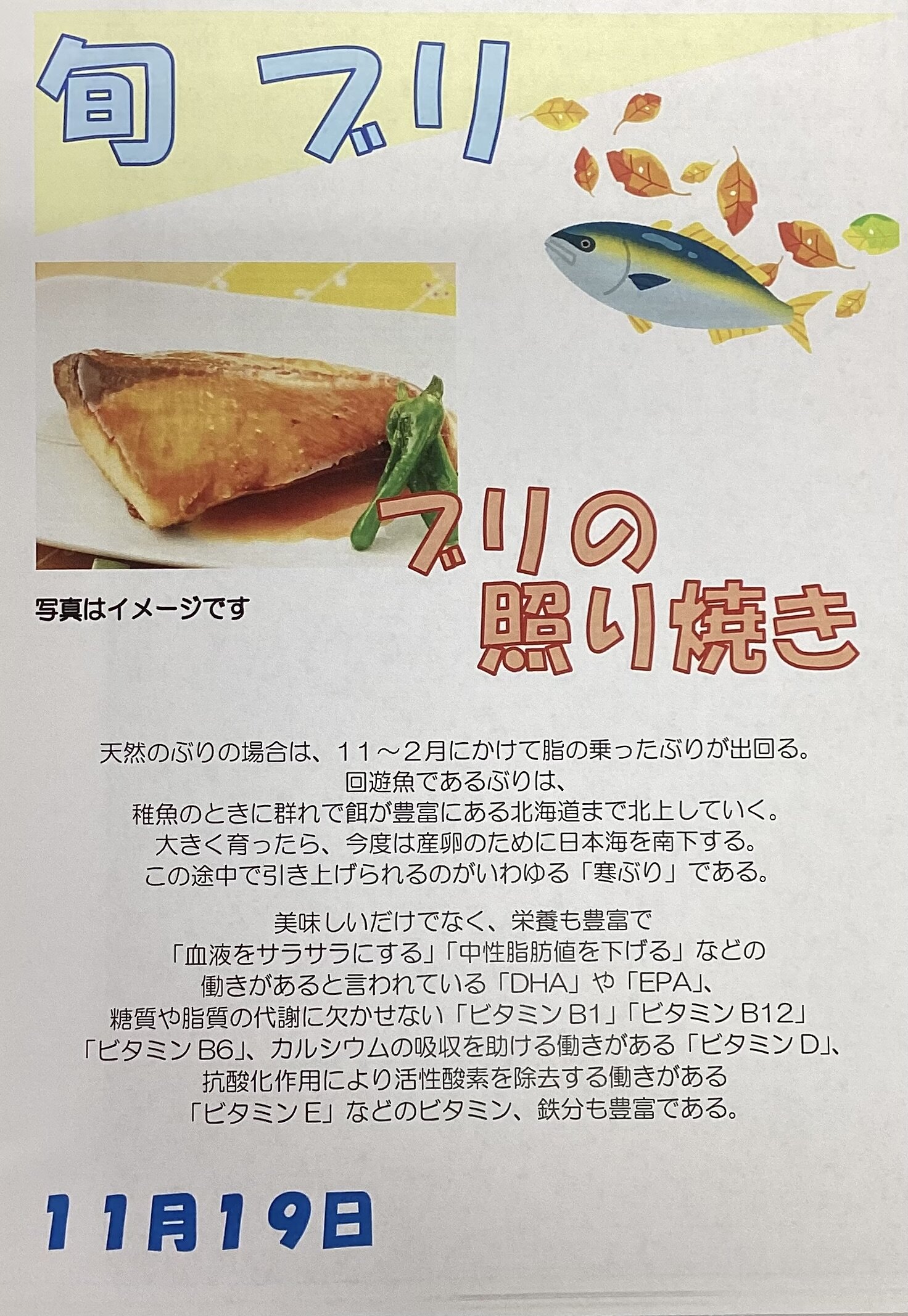 ブリもこれから脂がのって、美味しい季節となります。