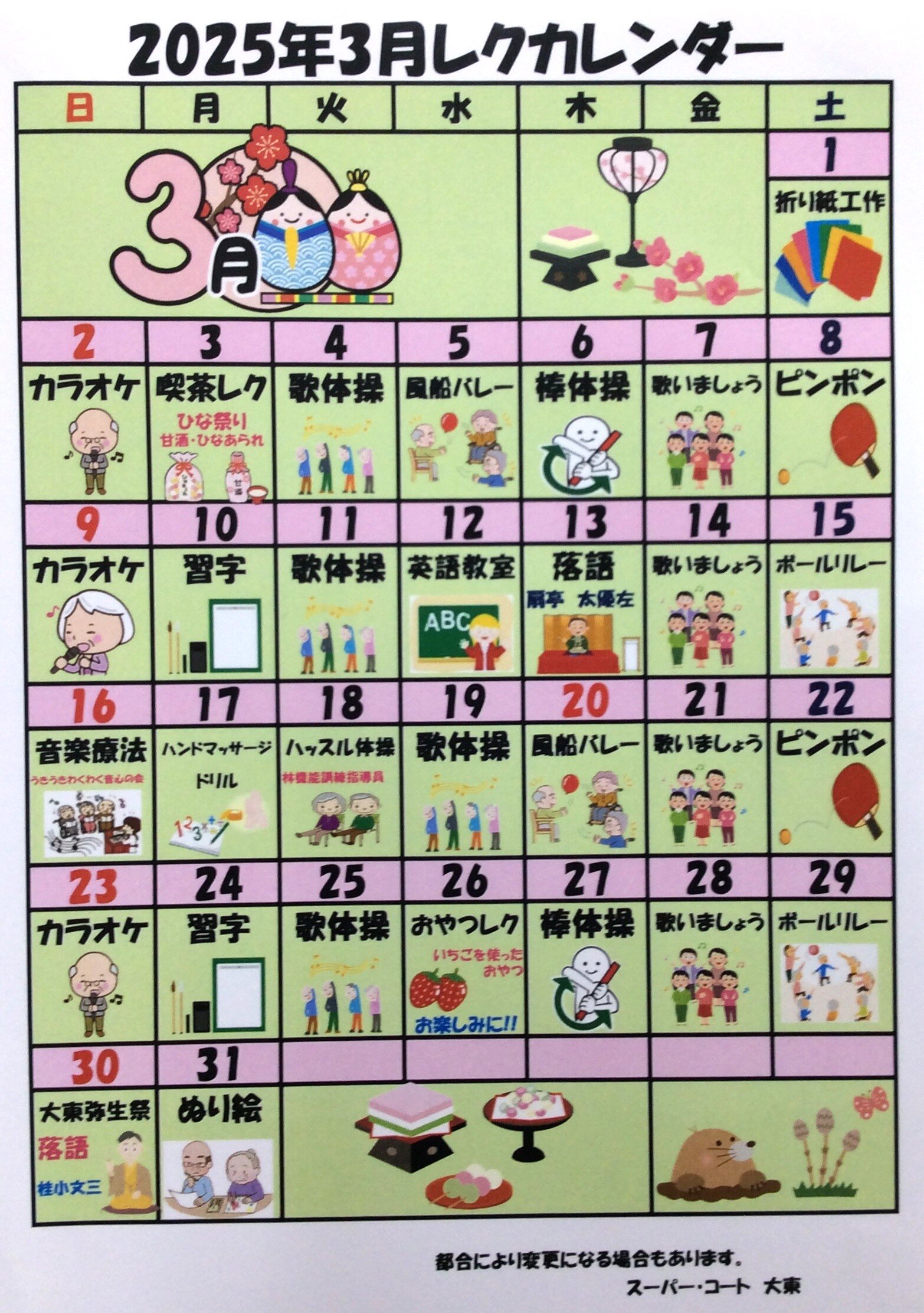 スーパー・コート大東では、毎日レクリエーションを行っています。