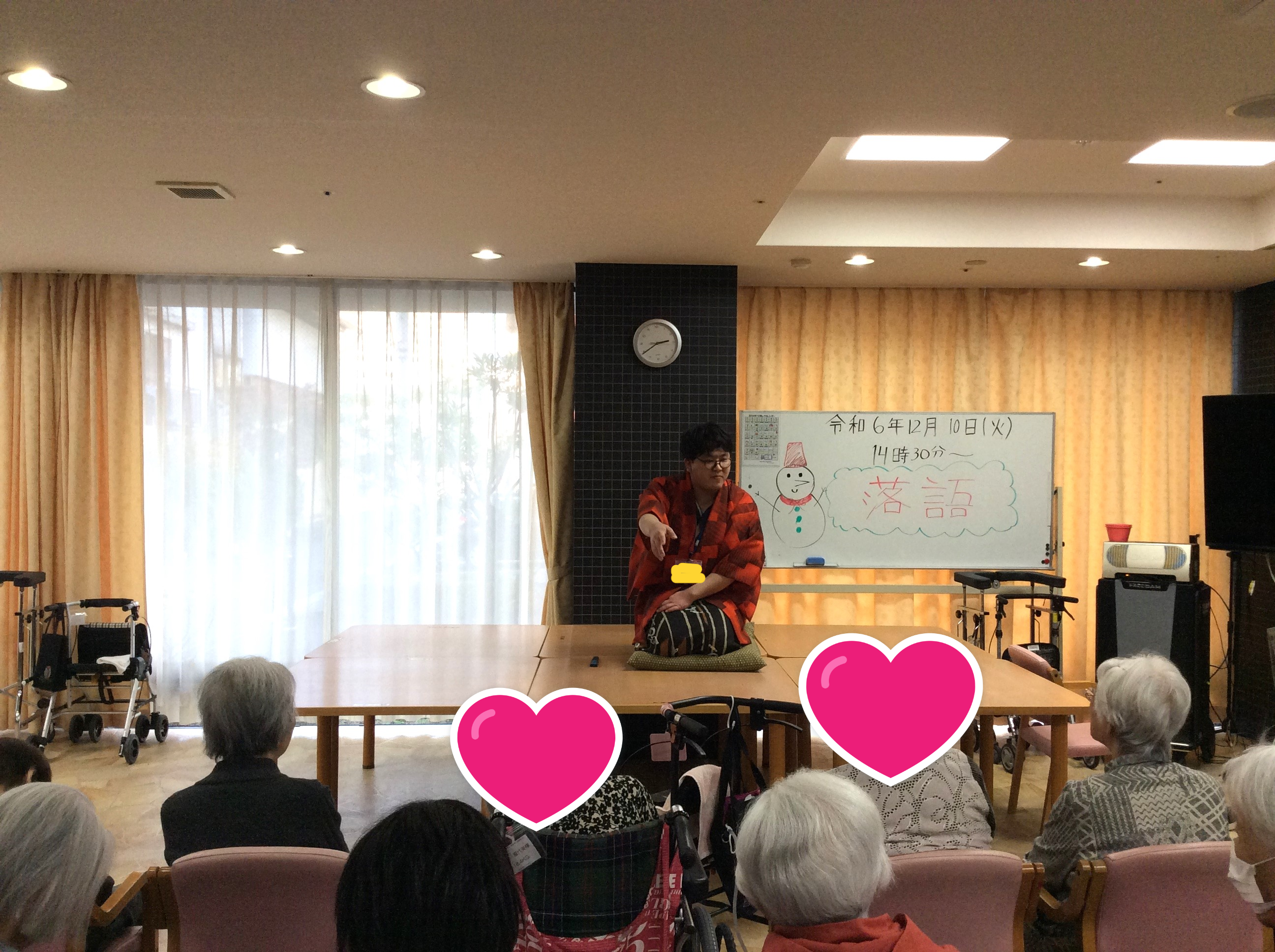 ・14時30分~レクリエーション 本日は『扇亭太優左』こと、職員による落語でした。