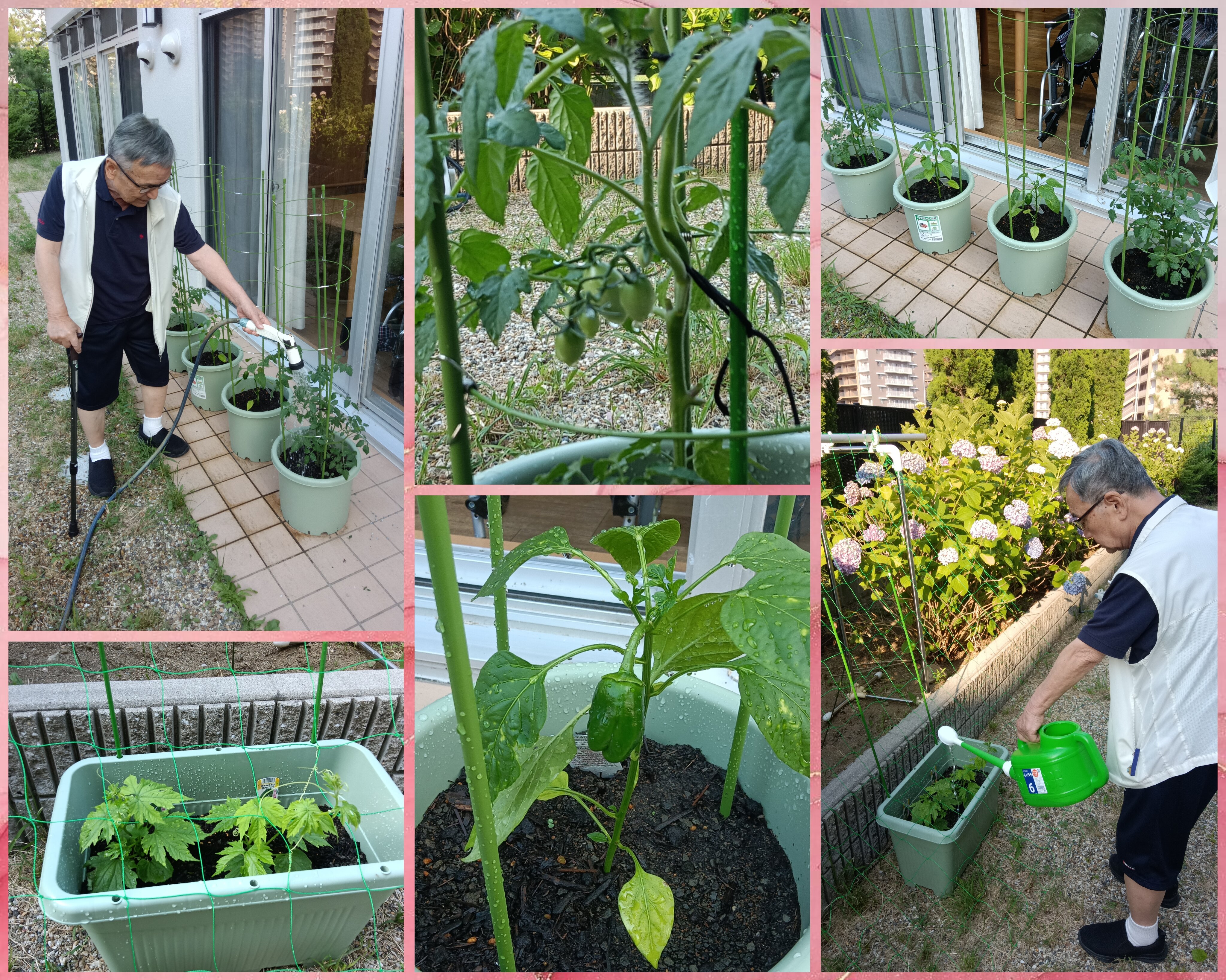 最初は分からない事ばかりでネットを調べ手探り状態でしたが、詳しいご入居者のアドバイスにも助けられ少しずつ大きくなり実がつき始めました!