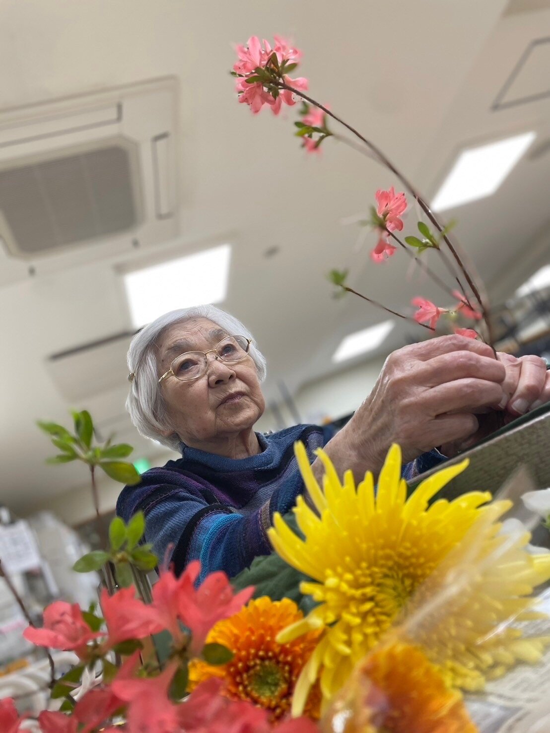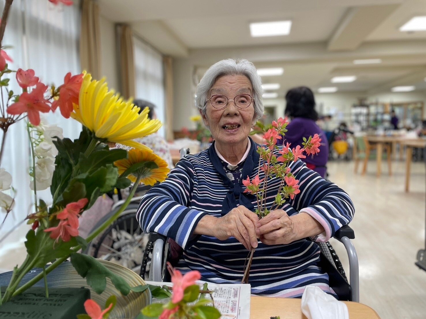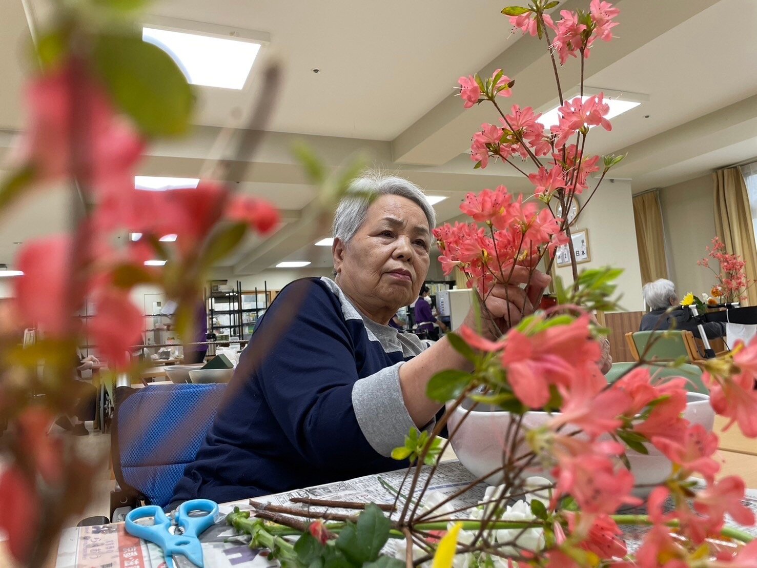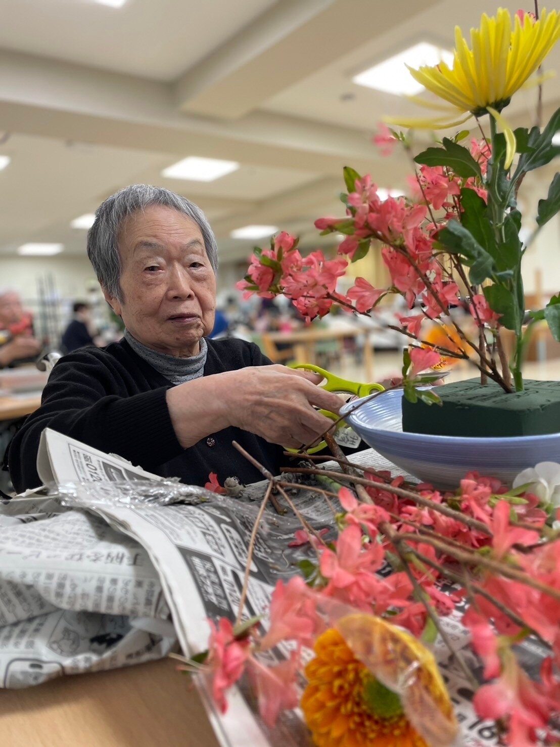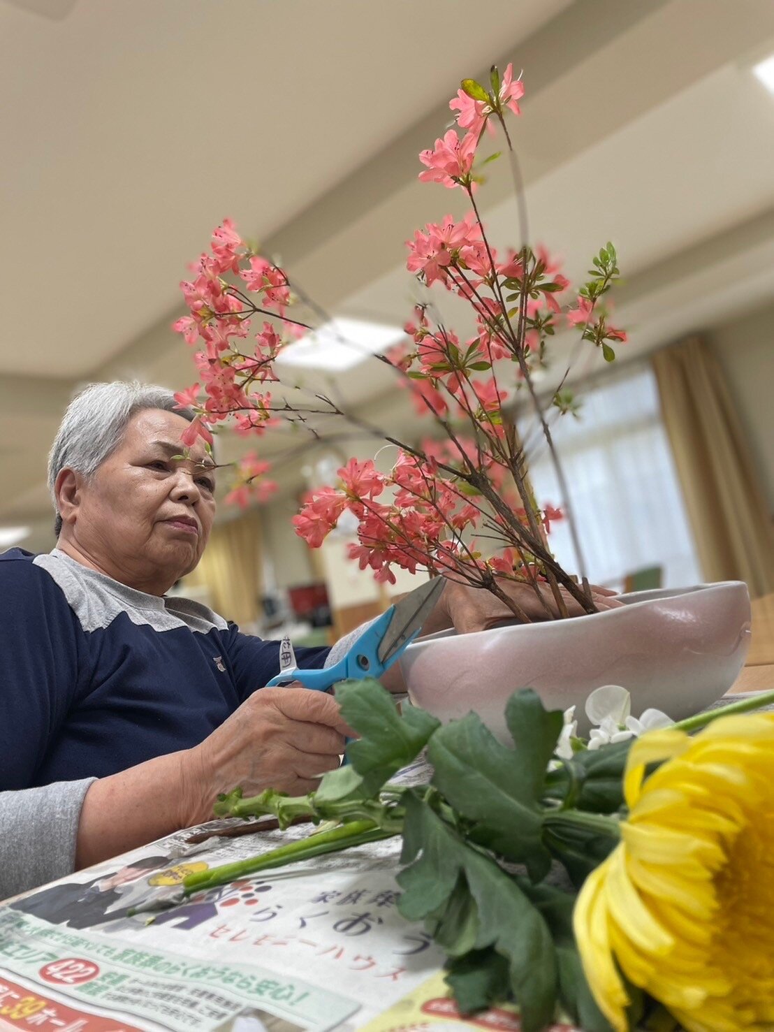 皆様、こんにちは。本日は、先日に開催致しました【生け花】の様子をお伝えさせて頂きます。当日は、ほぼ全てのご入居者の皆様が参加され、季節のお花に触れながら楽しそうに過ごしておられました。ご入居者の皆様からも「毎月、有難うございます」「いつもありがとう」と嬉しいお声を頂く事が出来ました。当施設では、毎日のレクレーションに加え、定期的に大型レク等を開催しております。次回もお楽しみに。