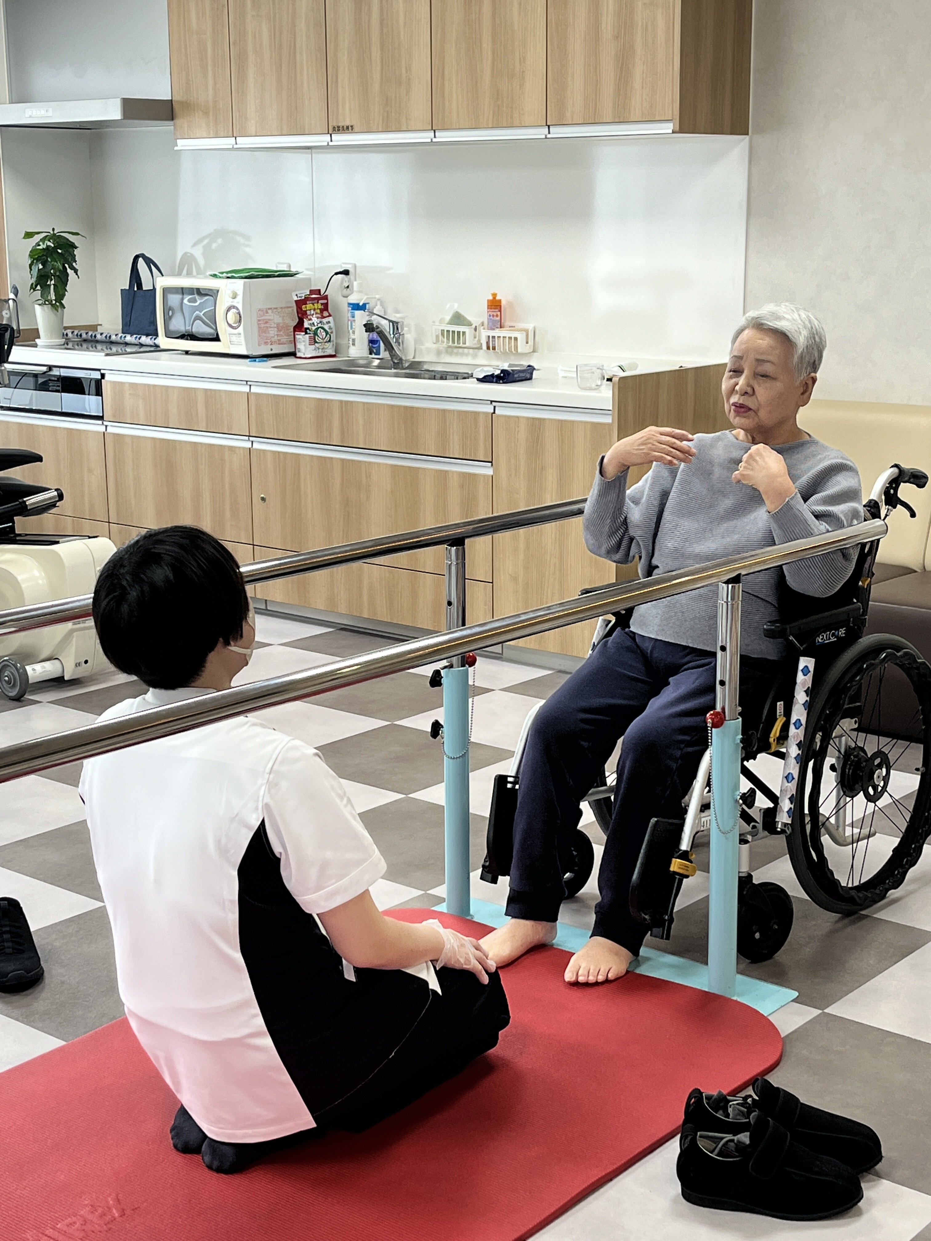 当施設では、様々なセラピストが、ご入居者の状態に合わせてメニューを組みながら、リハビリを行っております。ご来訪の際には、ぜひ、ご覧くださいませ。