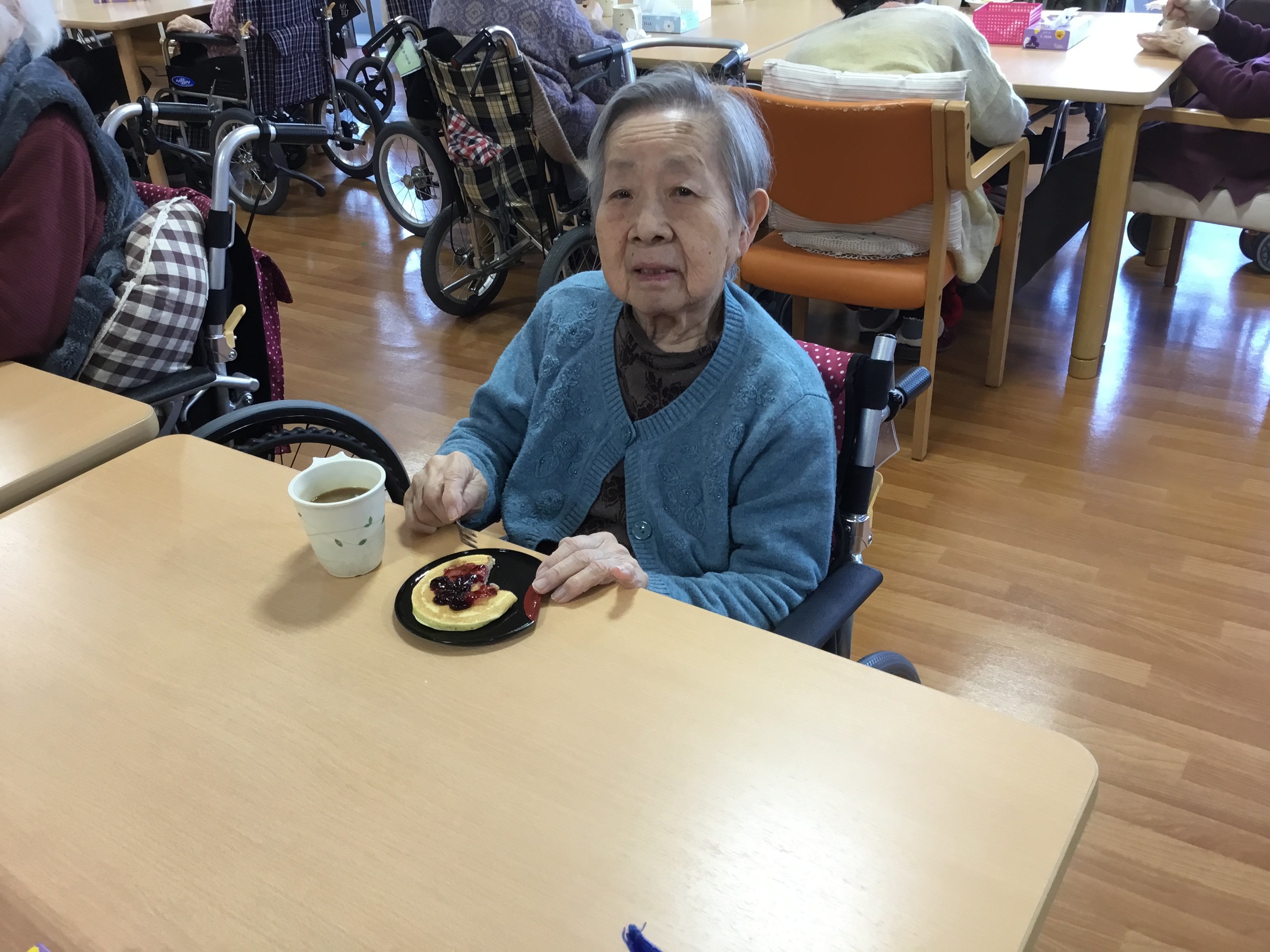 去る4月30日におやつレクを実施しました。ホットケーキを職員で作りました。