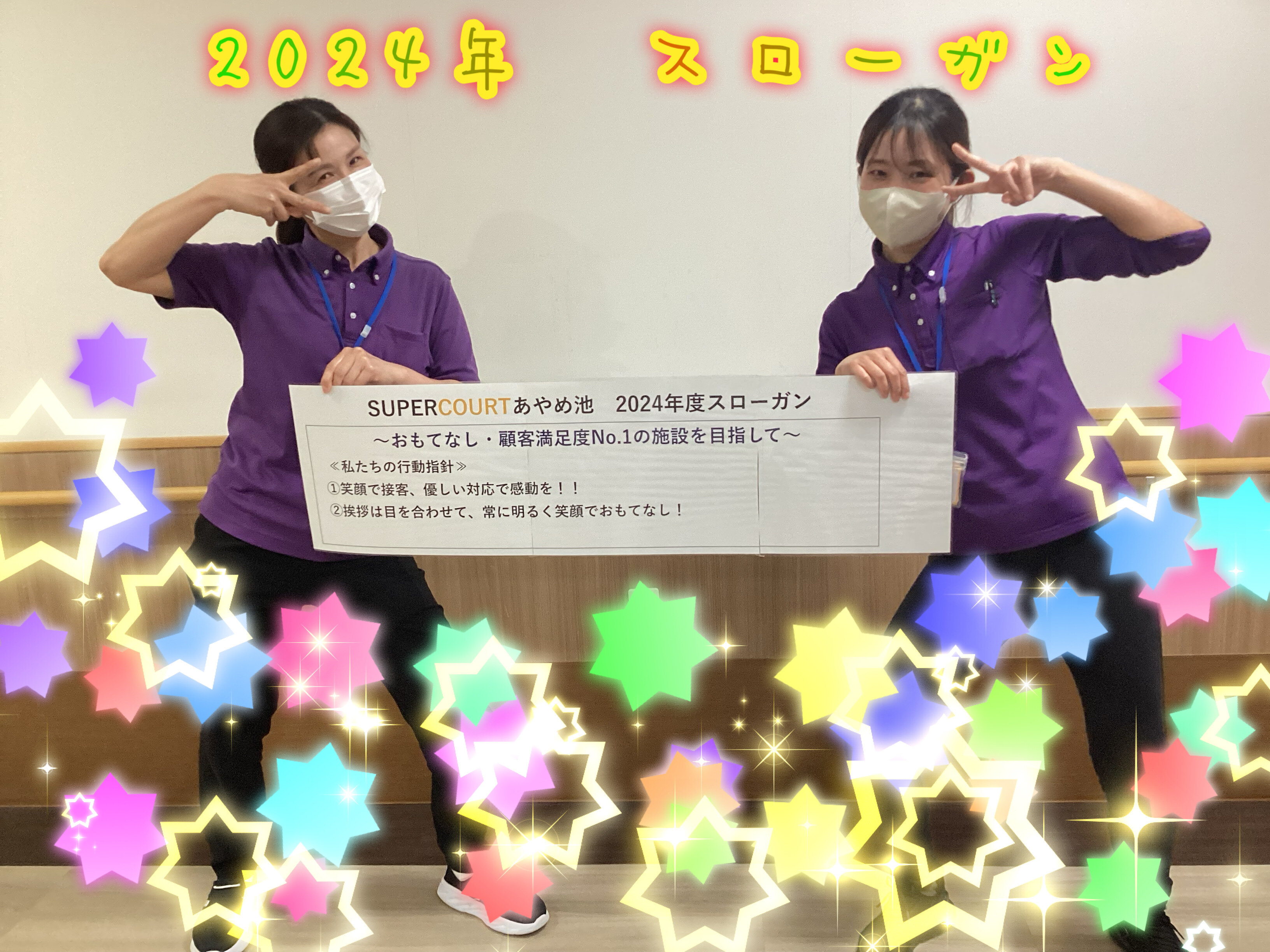 あやめ池では毎年スタッフ全員で施設のスローガンを掲げています。