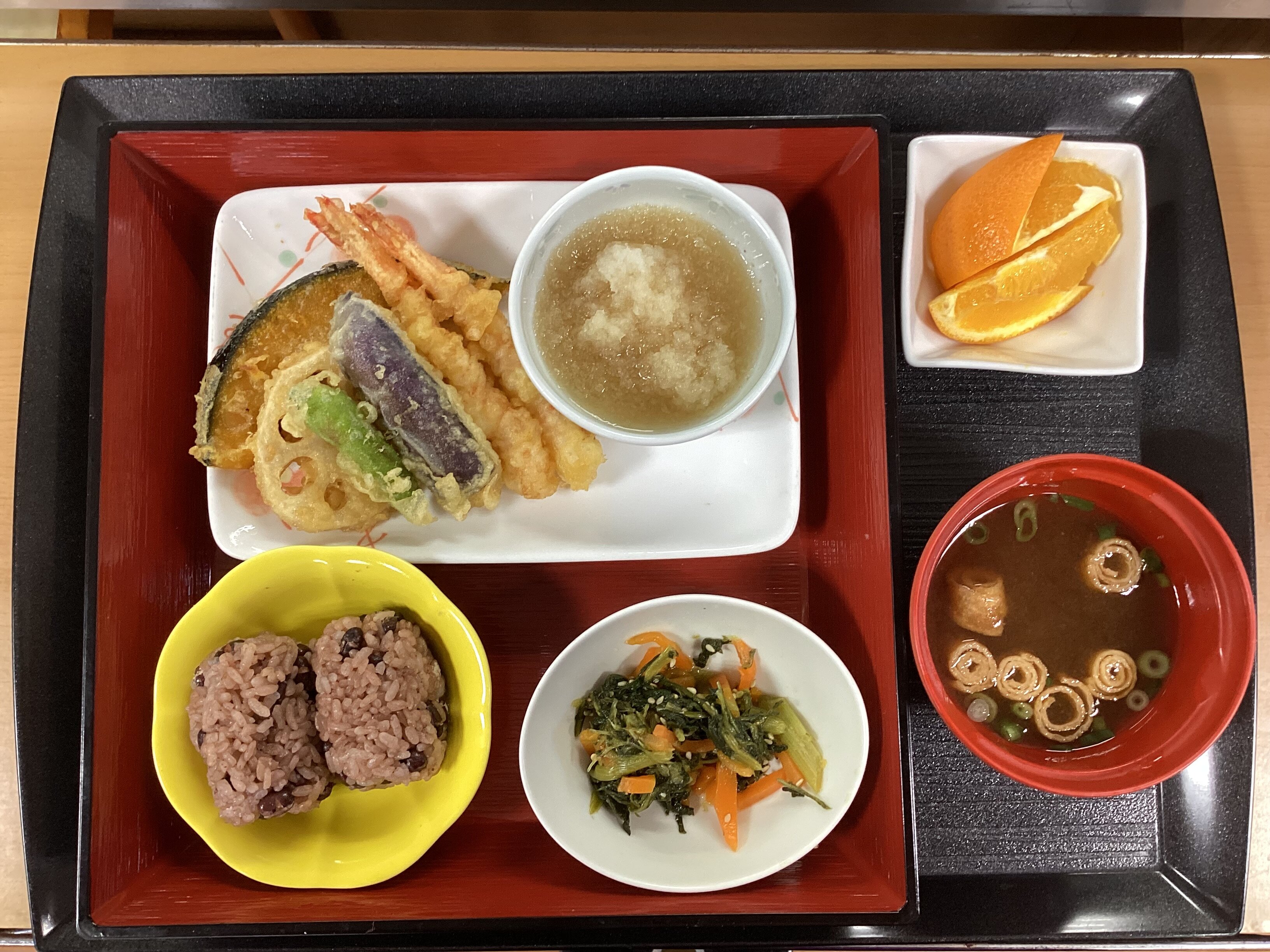 赤飯に天ぷらの盛り合わせでした(^_^)