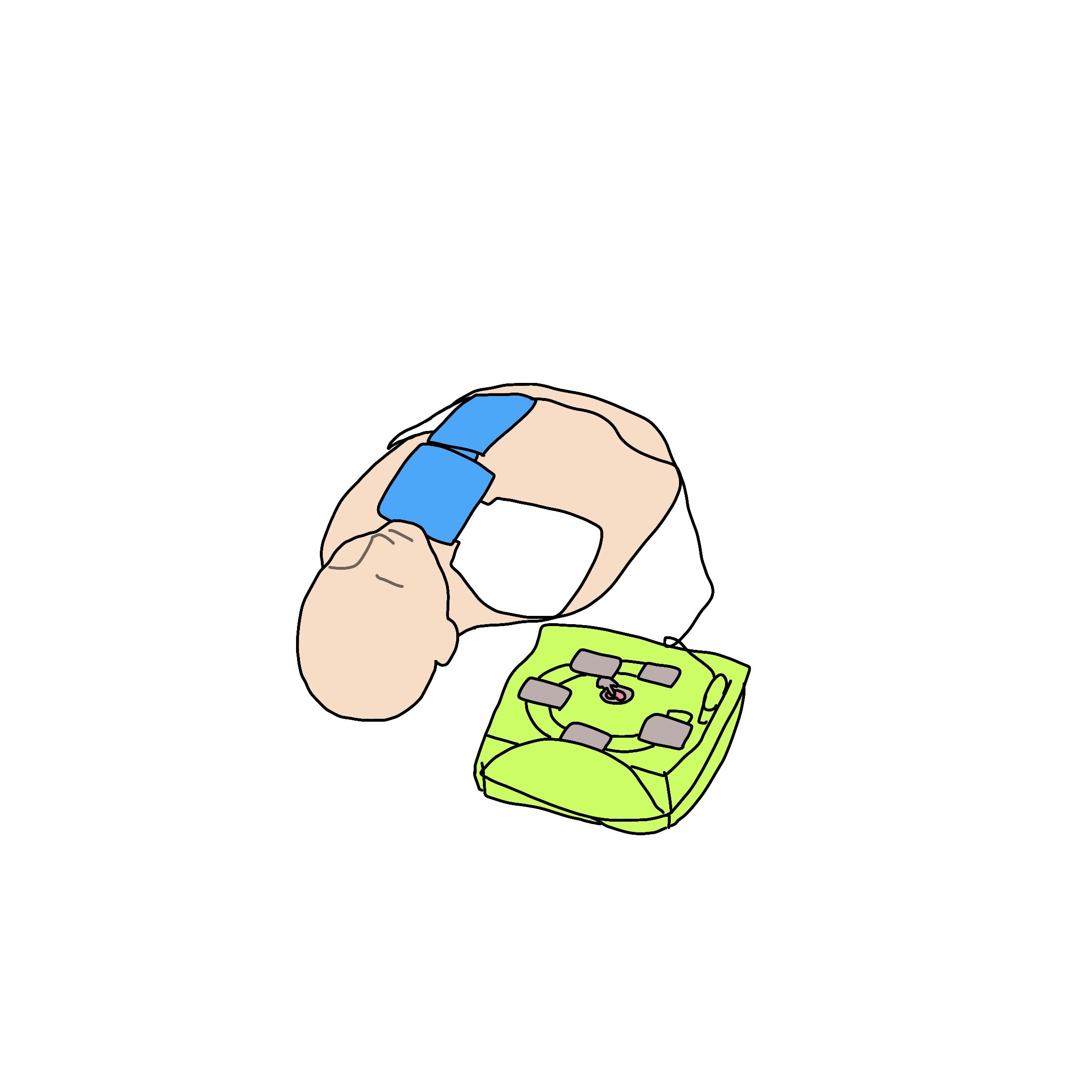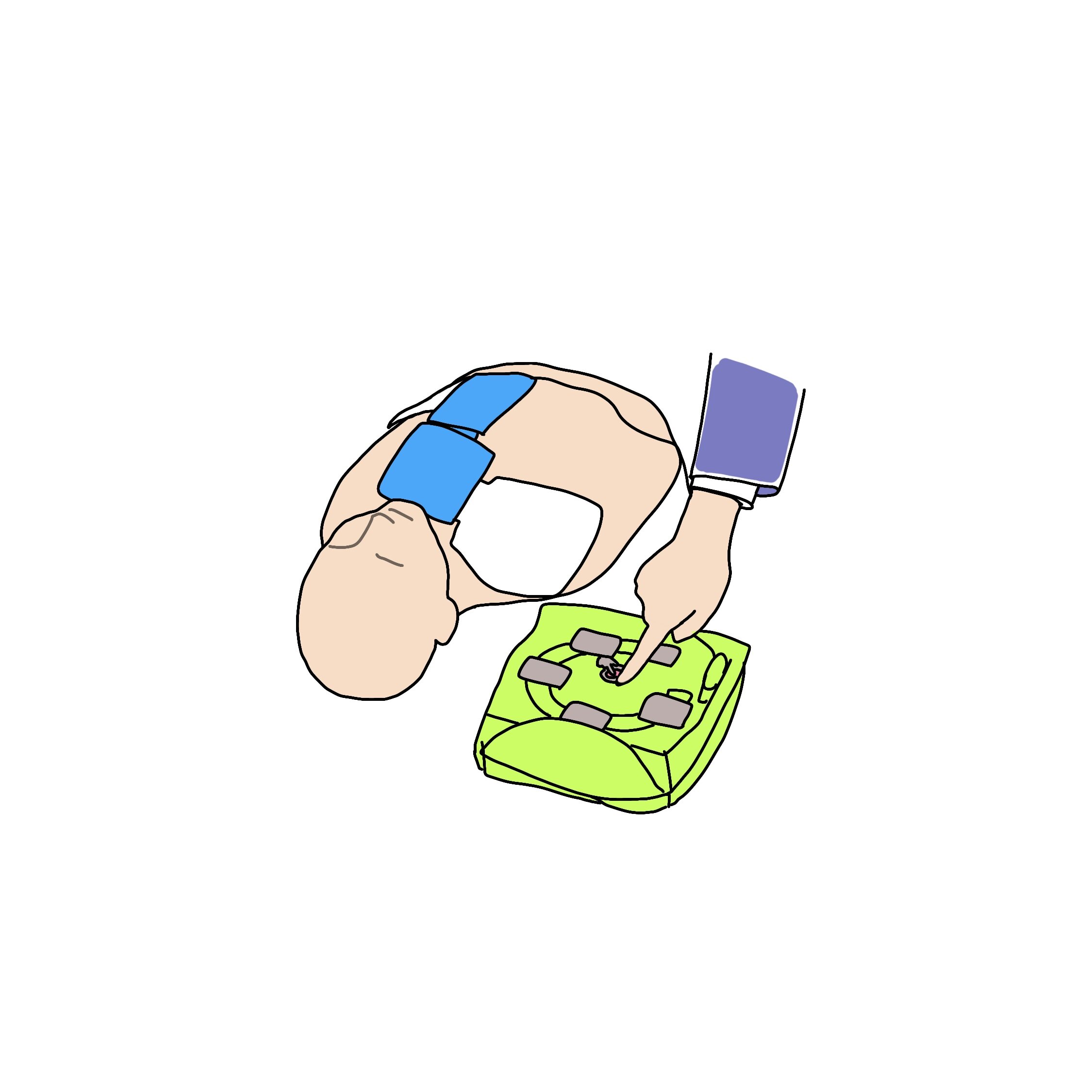 ①意識の確認、AEDと救急要請