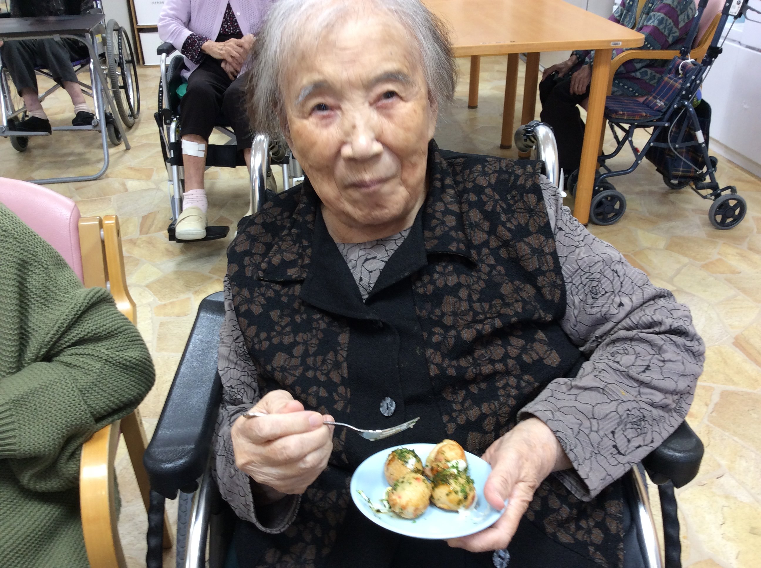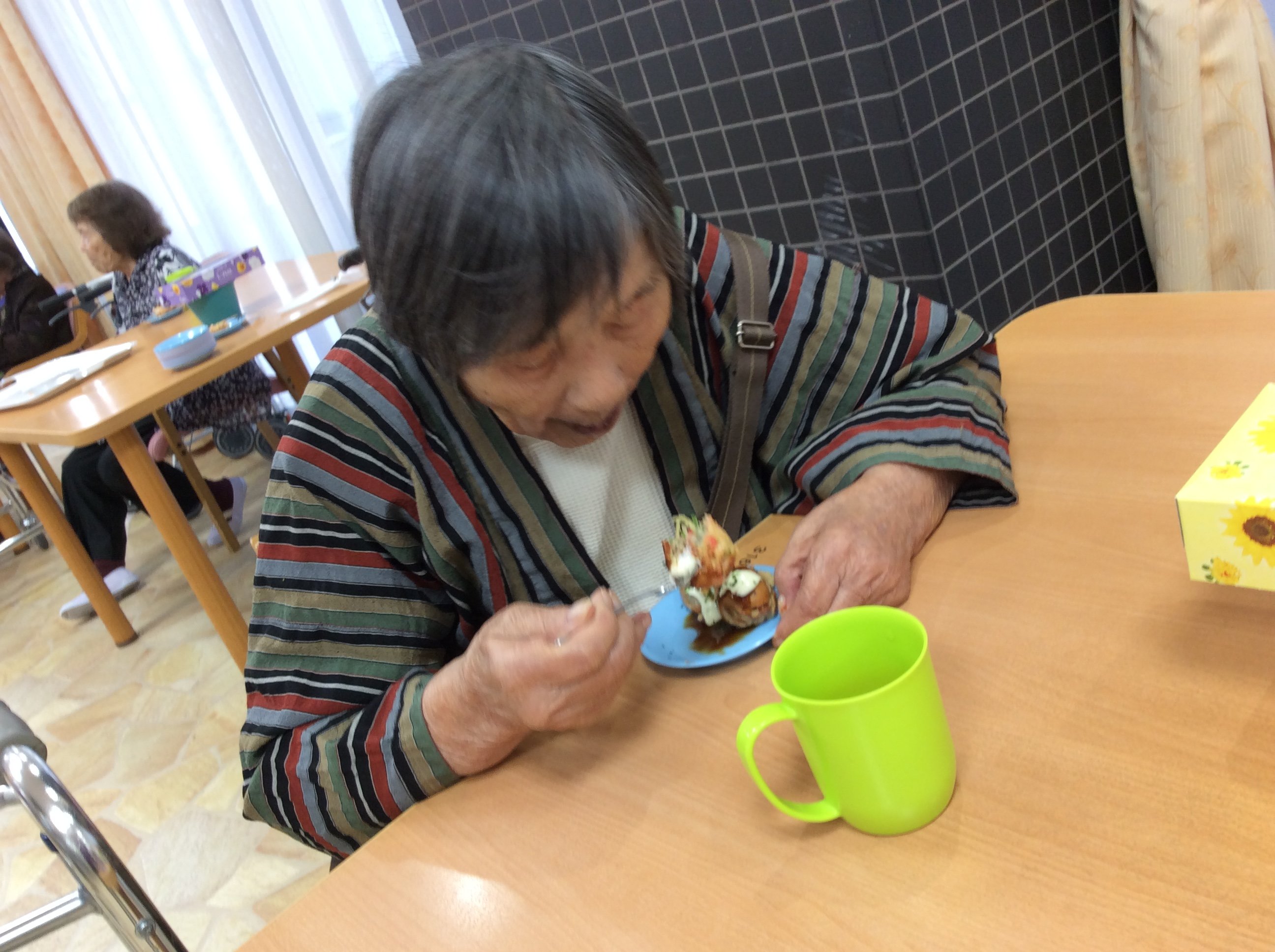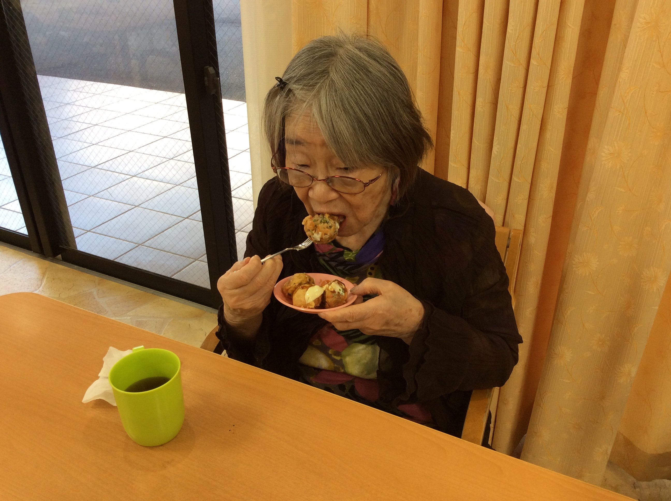 上手に作っておられ「家でもたこ焼きをよく作っていたのよ」と話してくださいました!