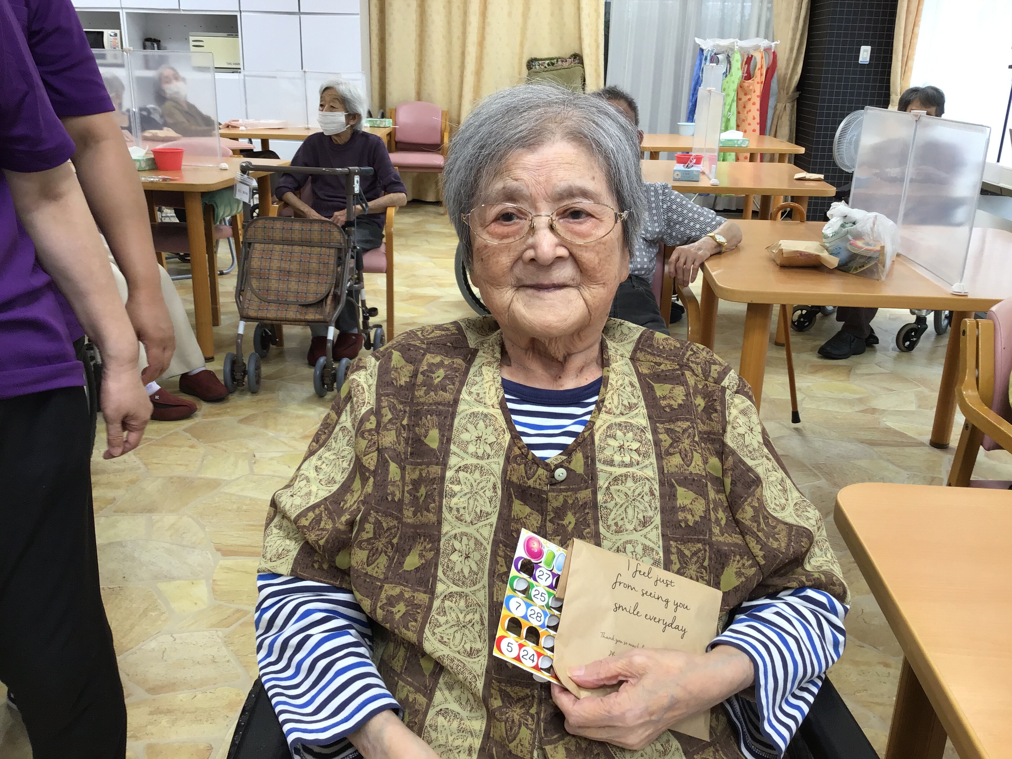 1等が当たって少し驚かれています!周りのご入居者の方と職員で盛大にお祝いのお声掛けをしました。