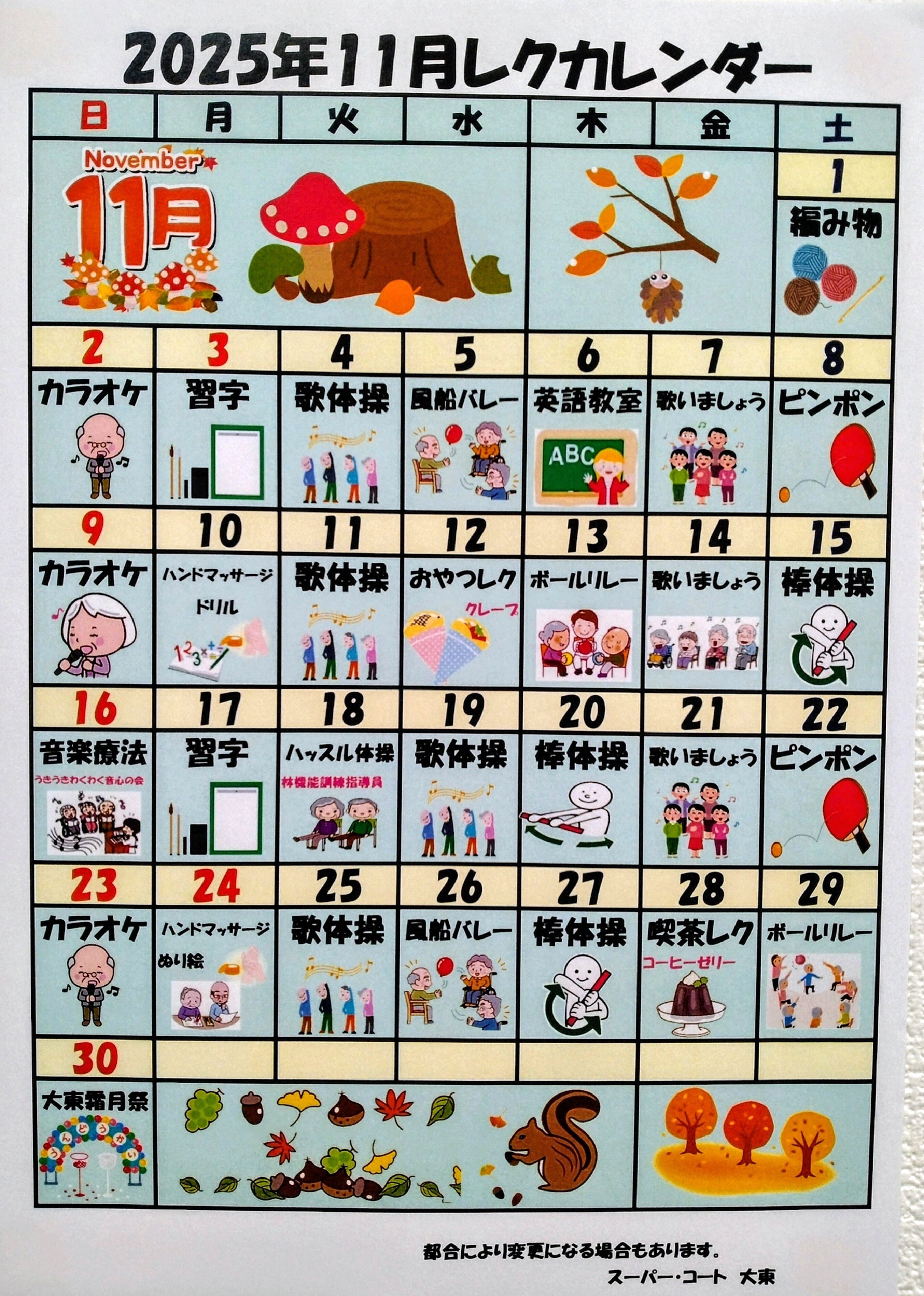 11月のレクリエーションをご紹介いたします