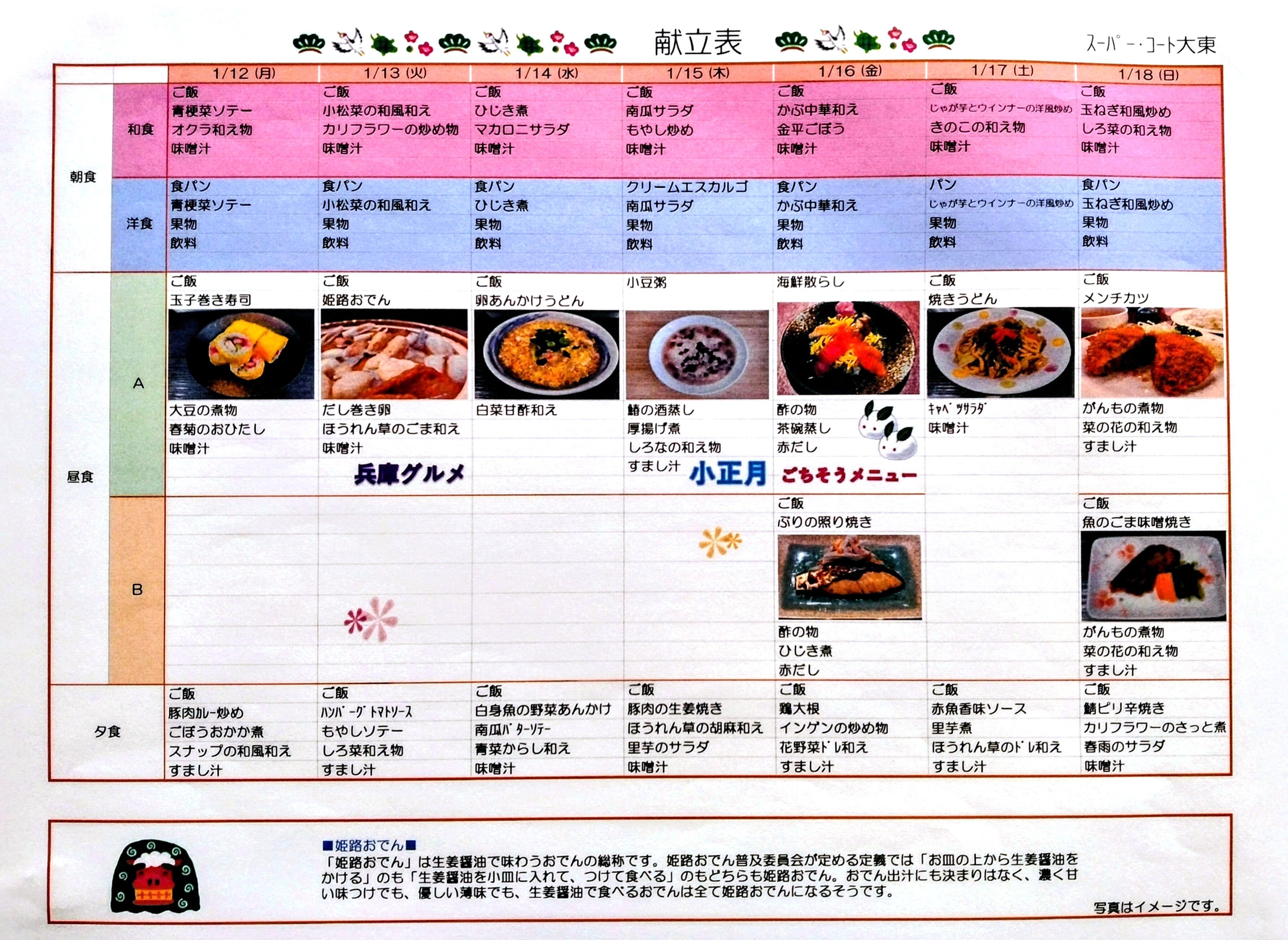 明日からの献立表のご紹介です