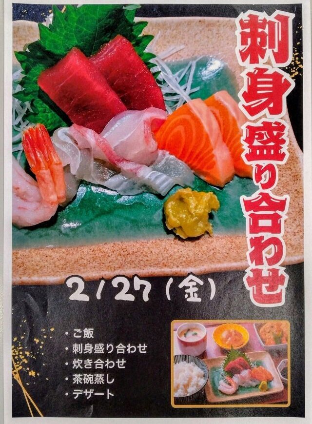 次回のごちそうメニューは『刺身盛り合わせ』です