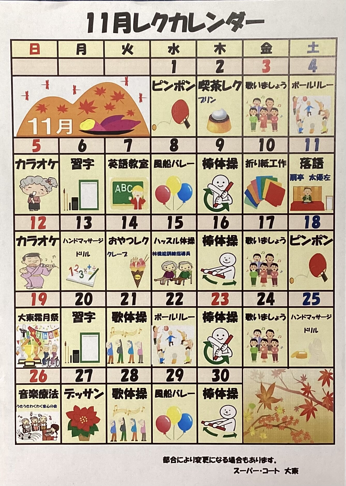 スーパー・コート大東では楽しいレクリエーションを毎日行っております!
