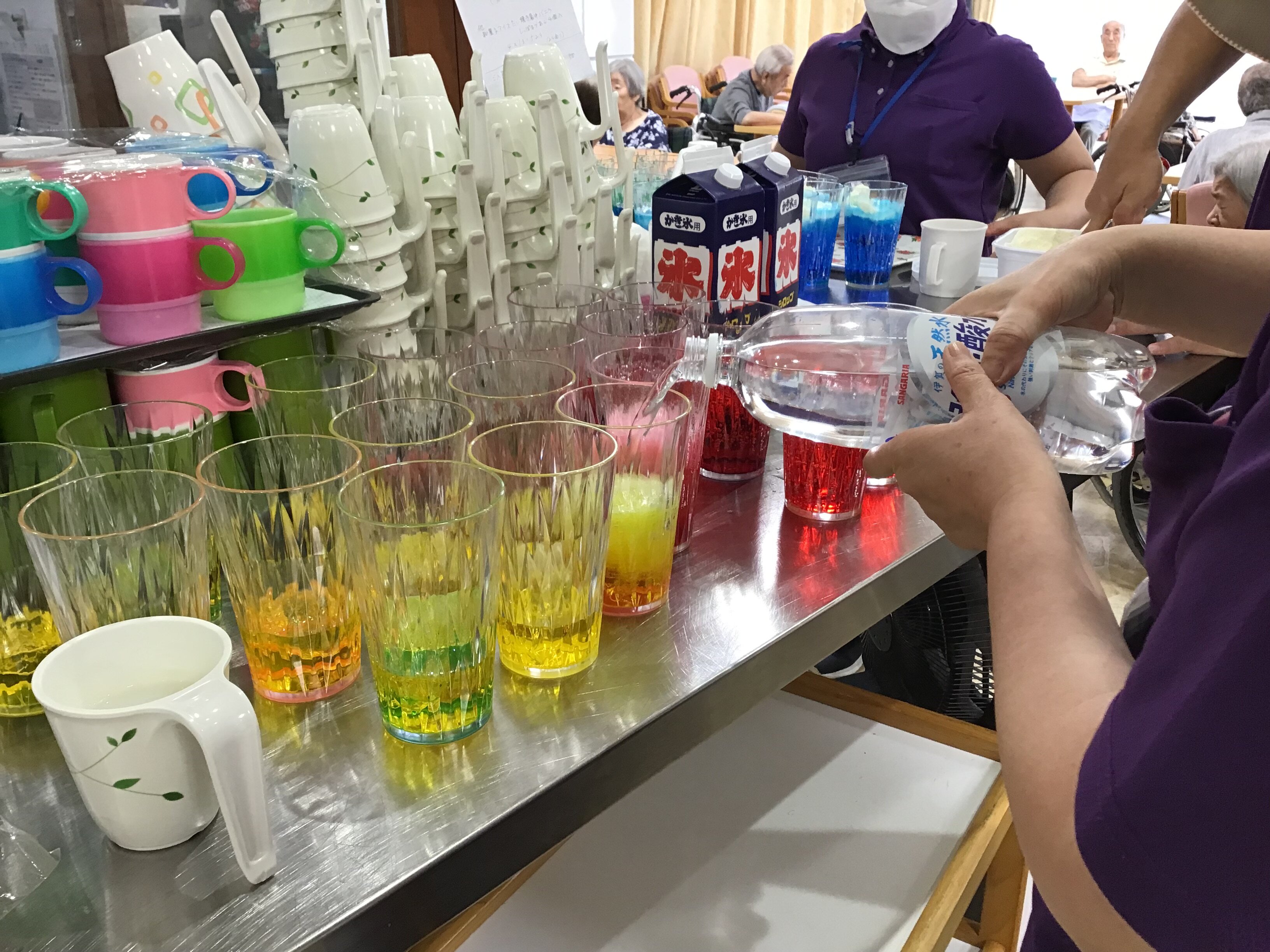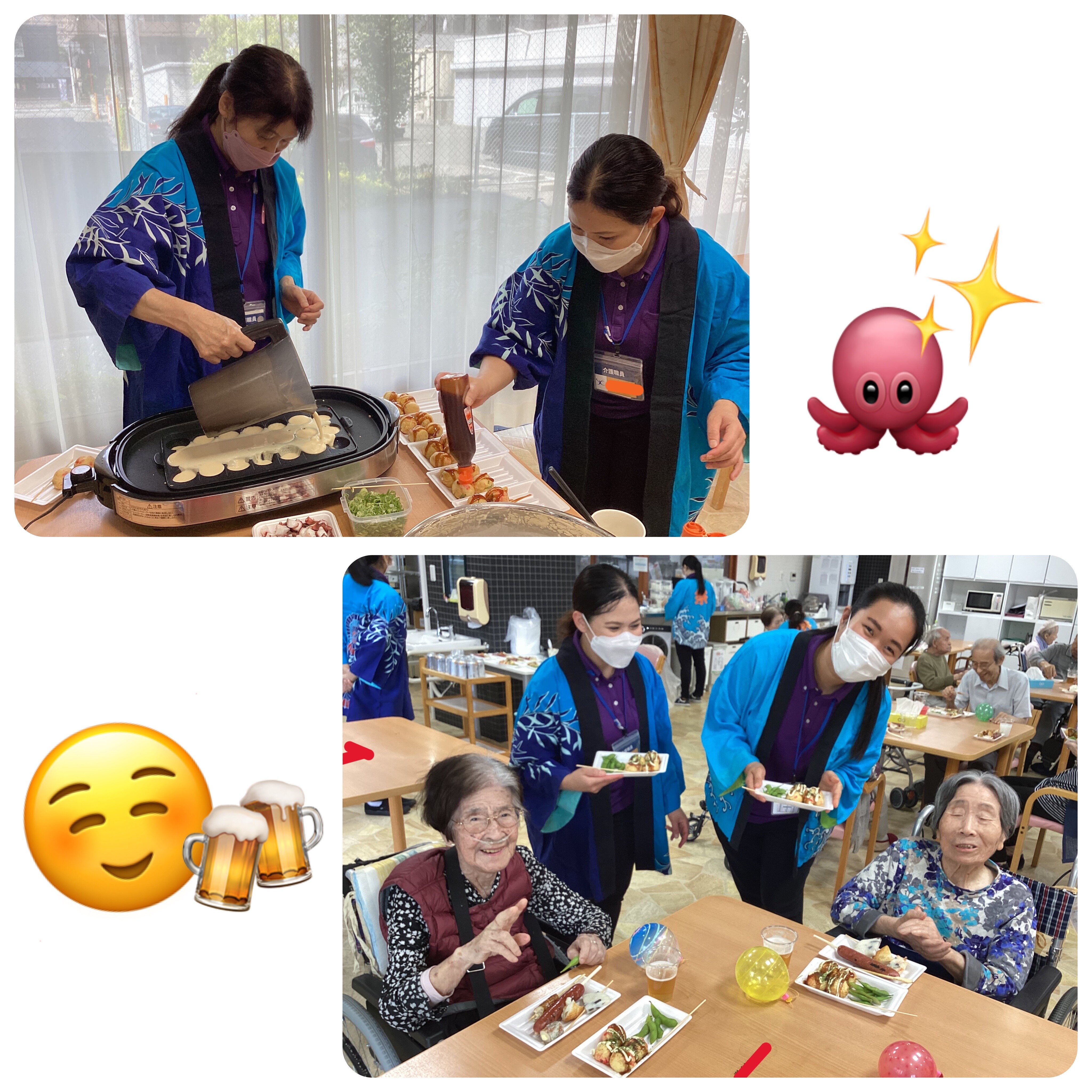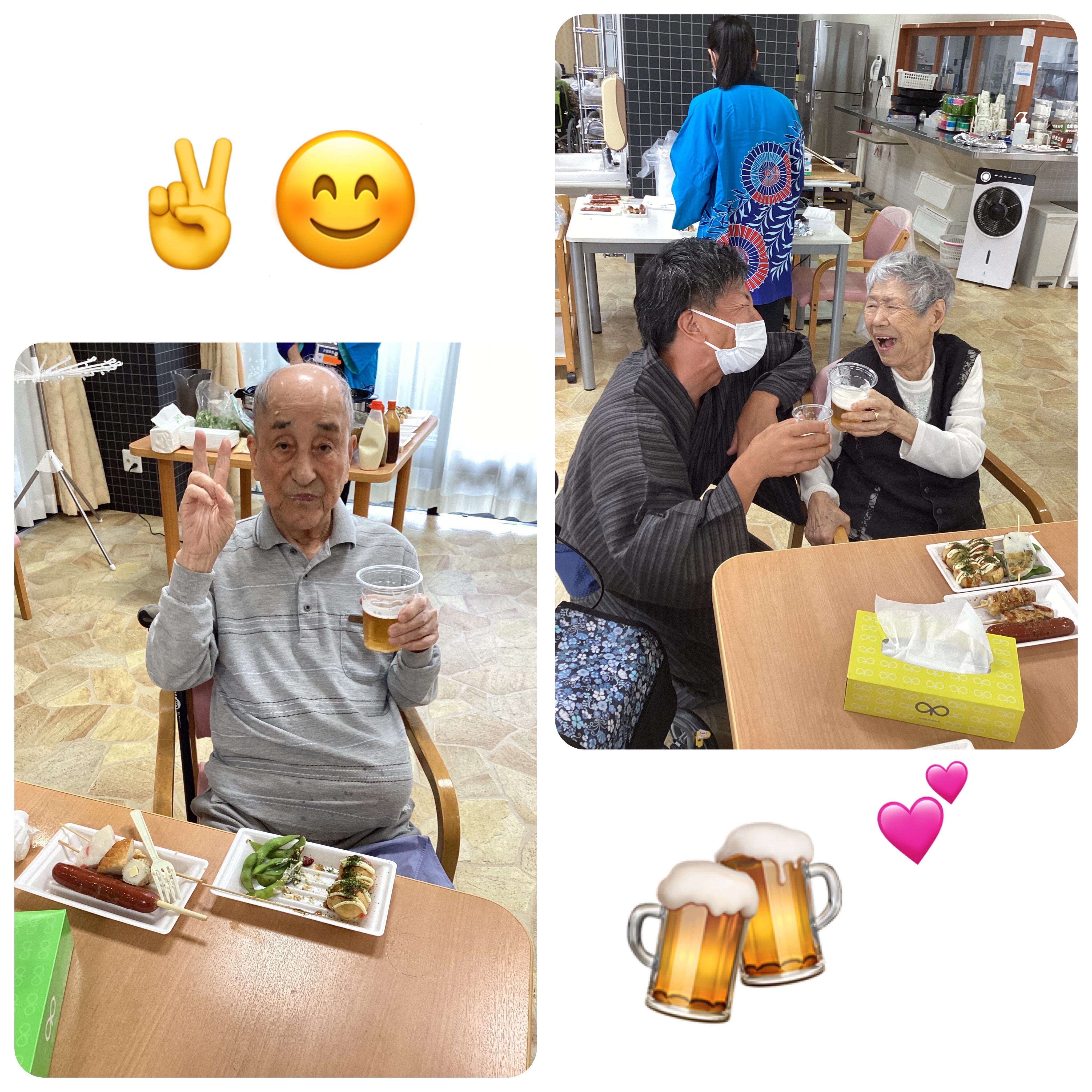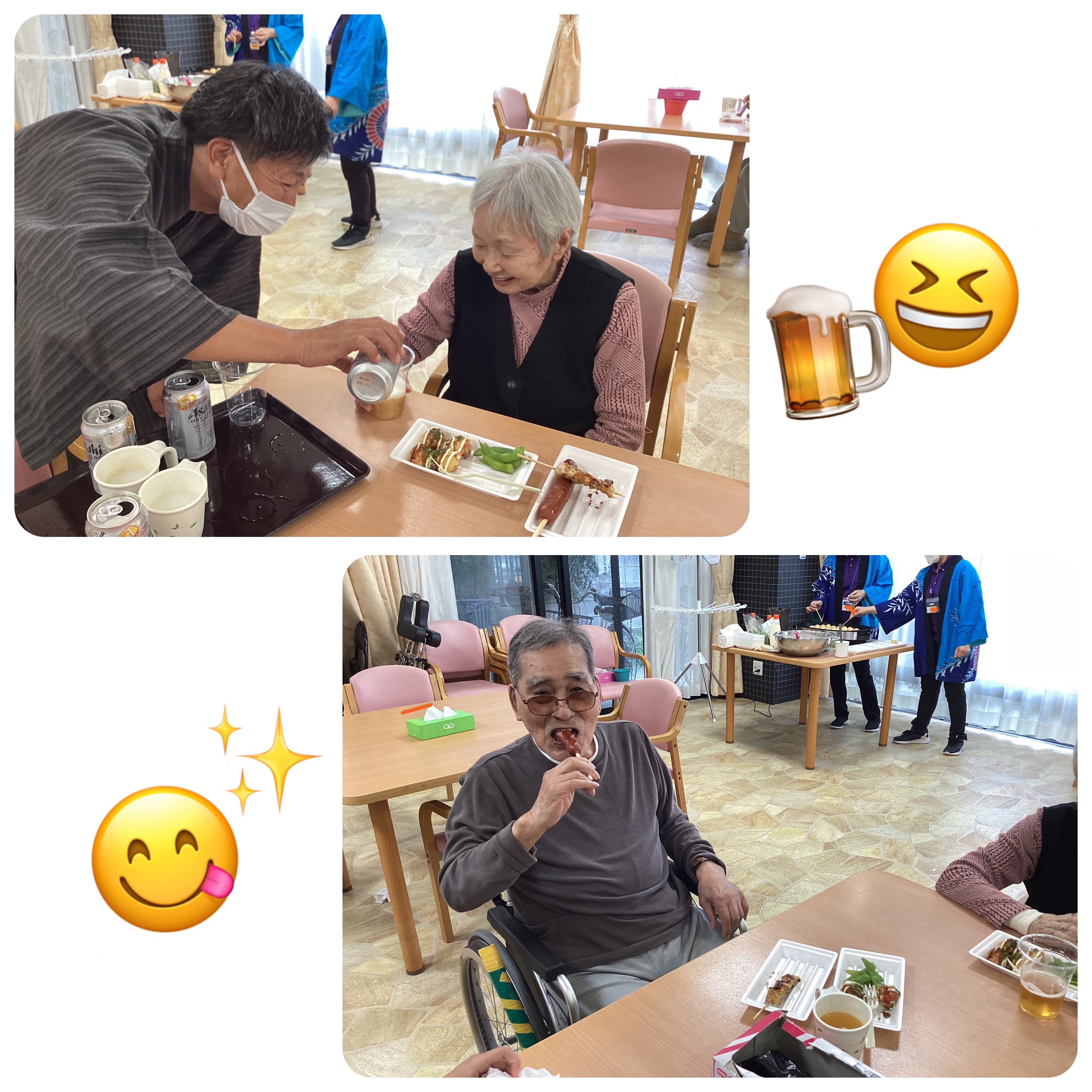 施設長が浴衣を着て皆さんに飲み物を配ってくれました!