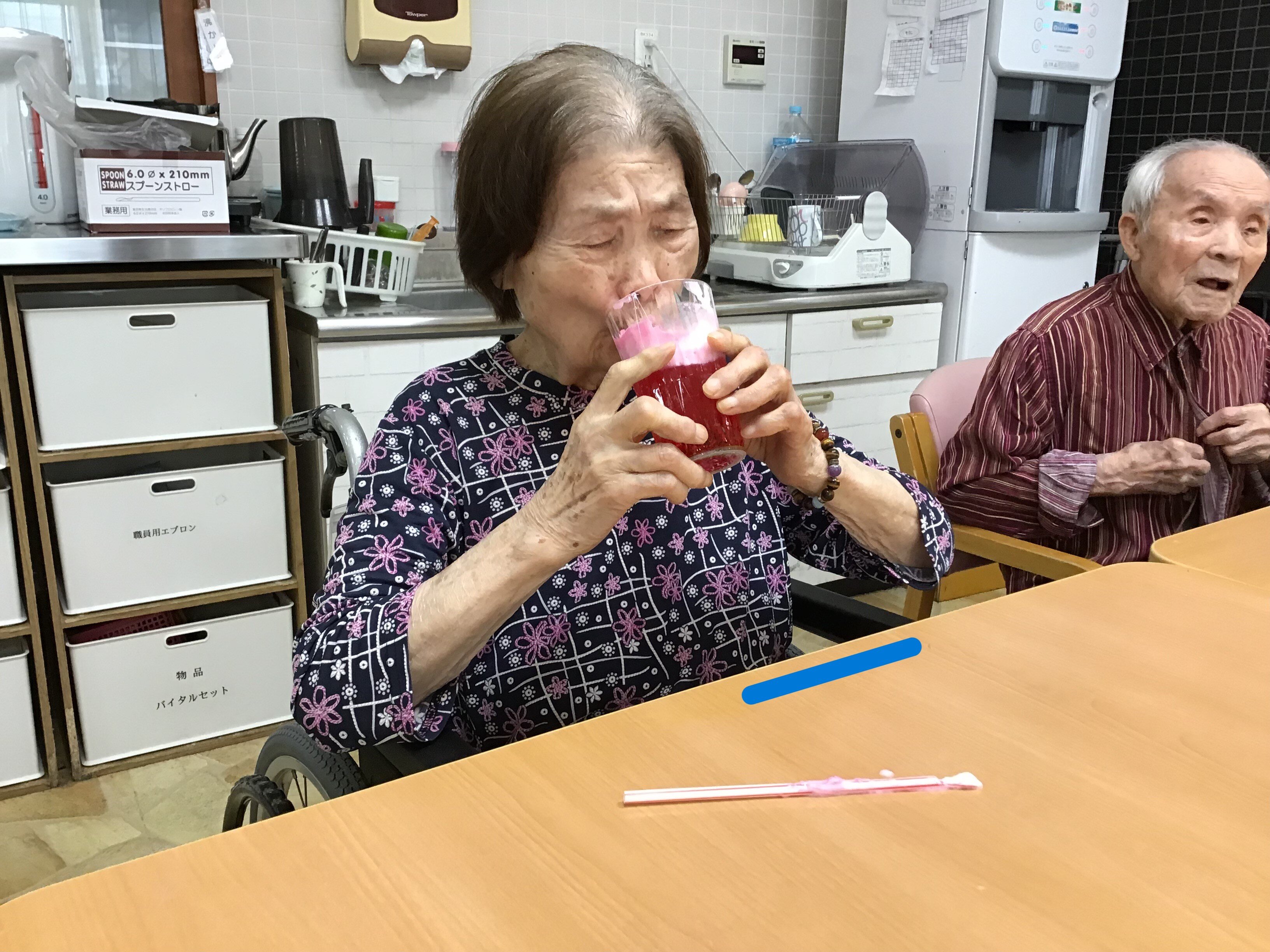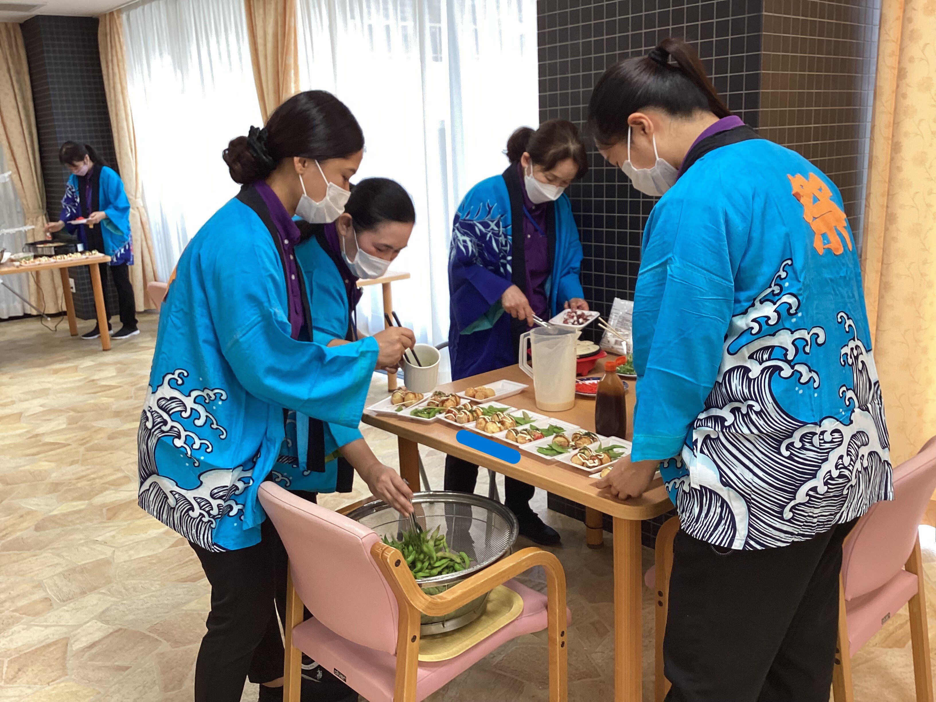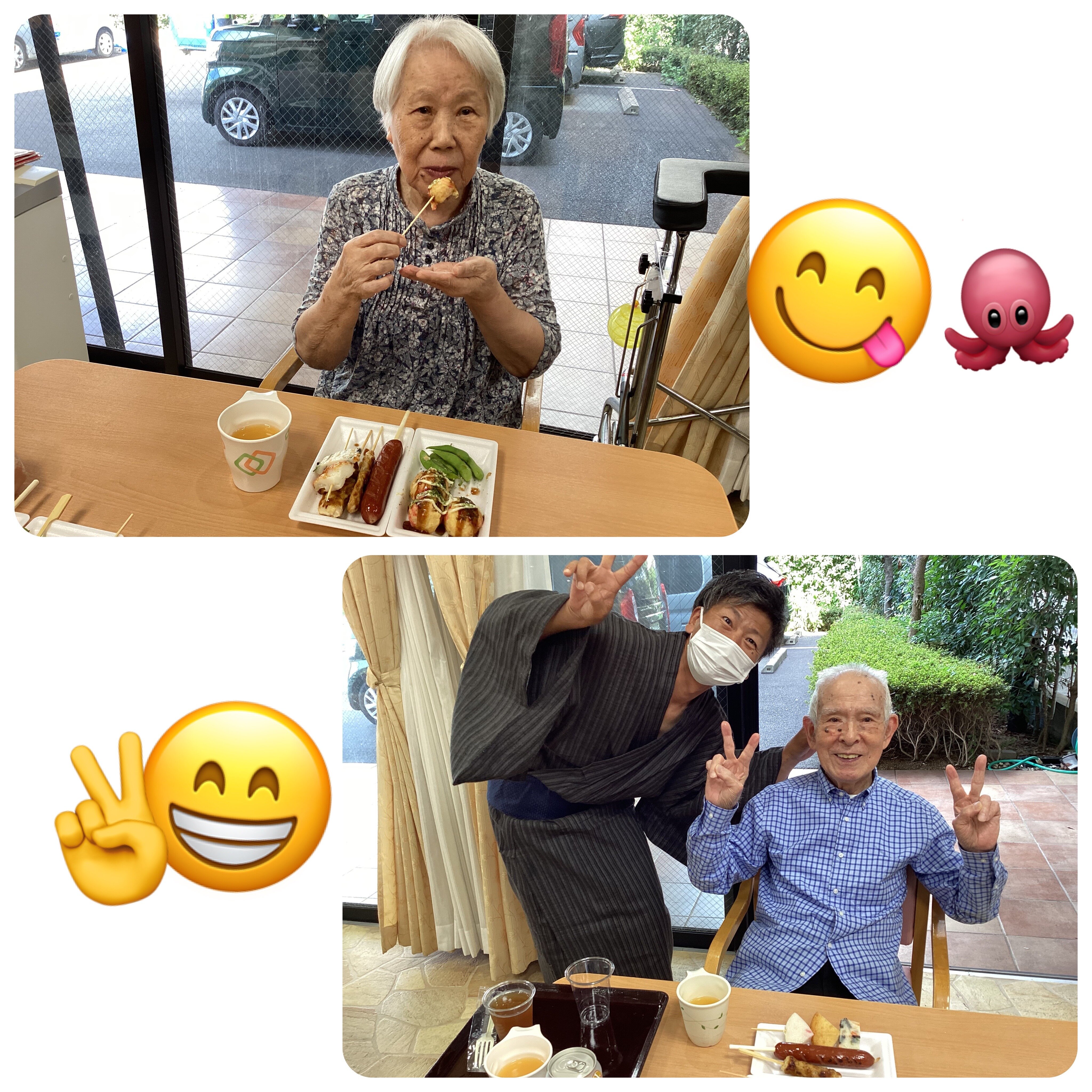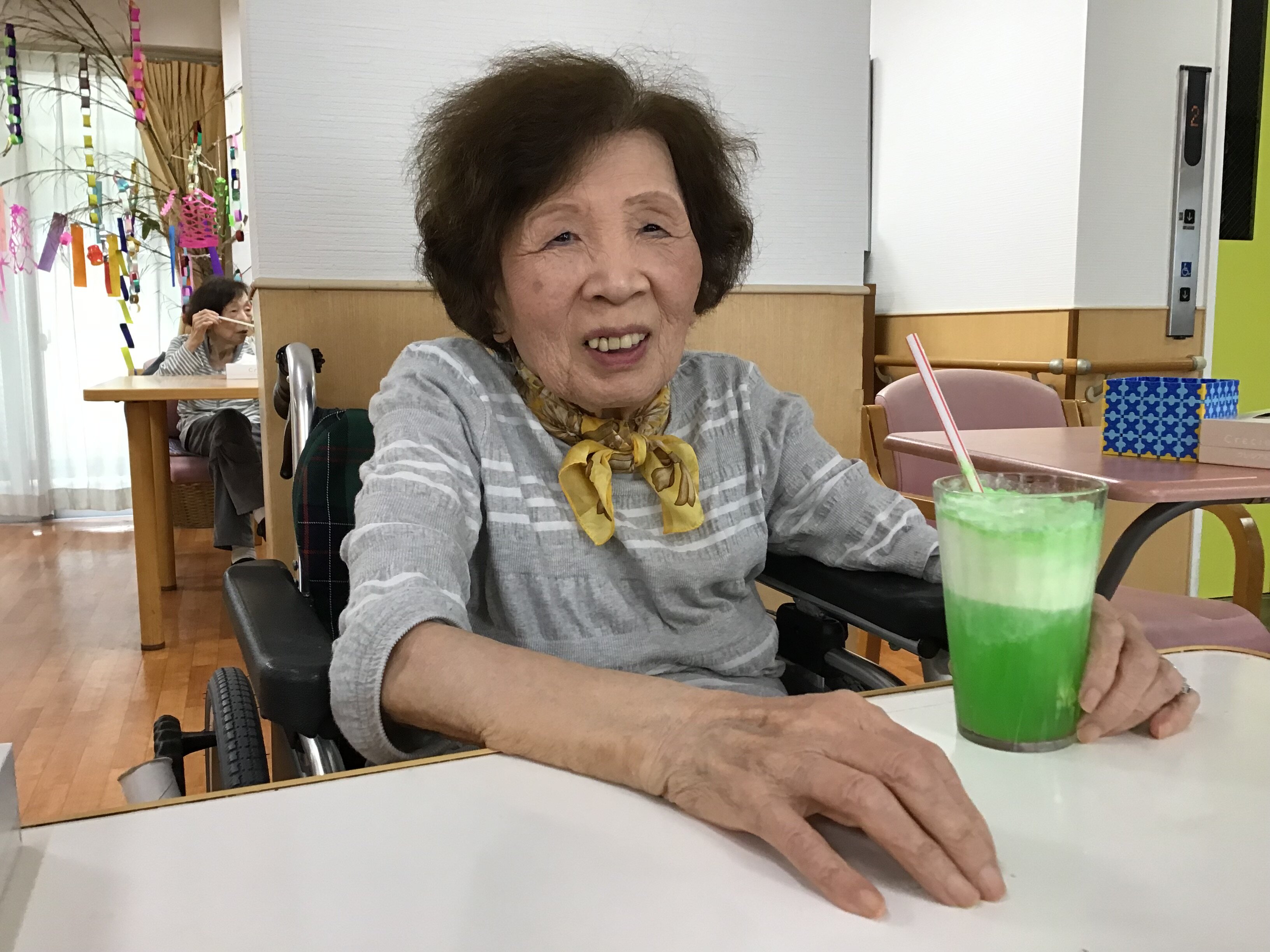 施設長が浴衣を着て皆さんに飲み物を配ってくれました!