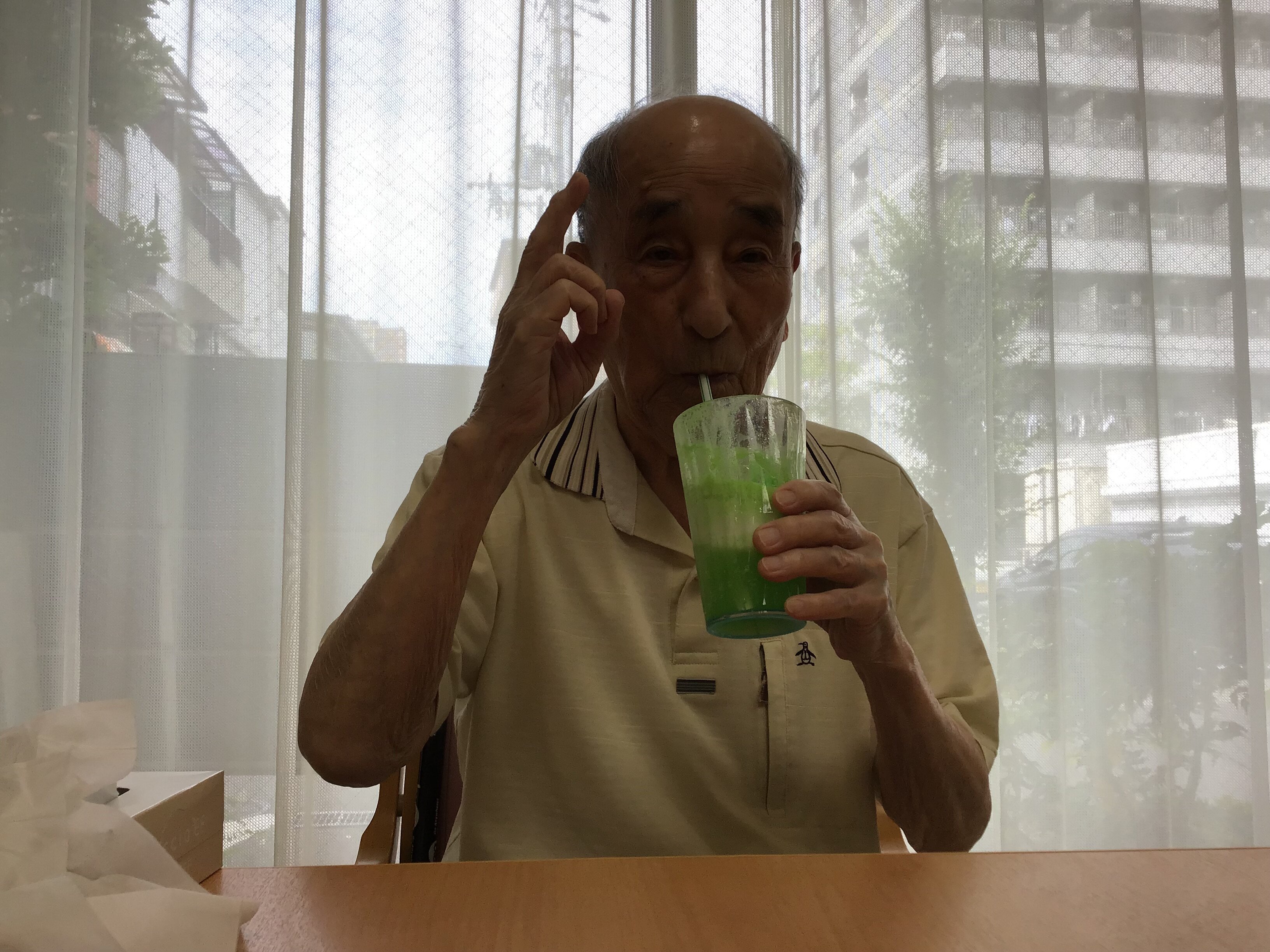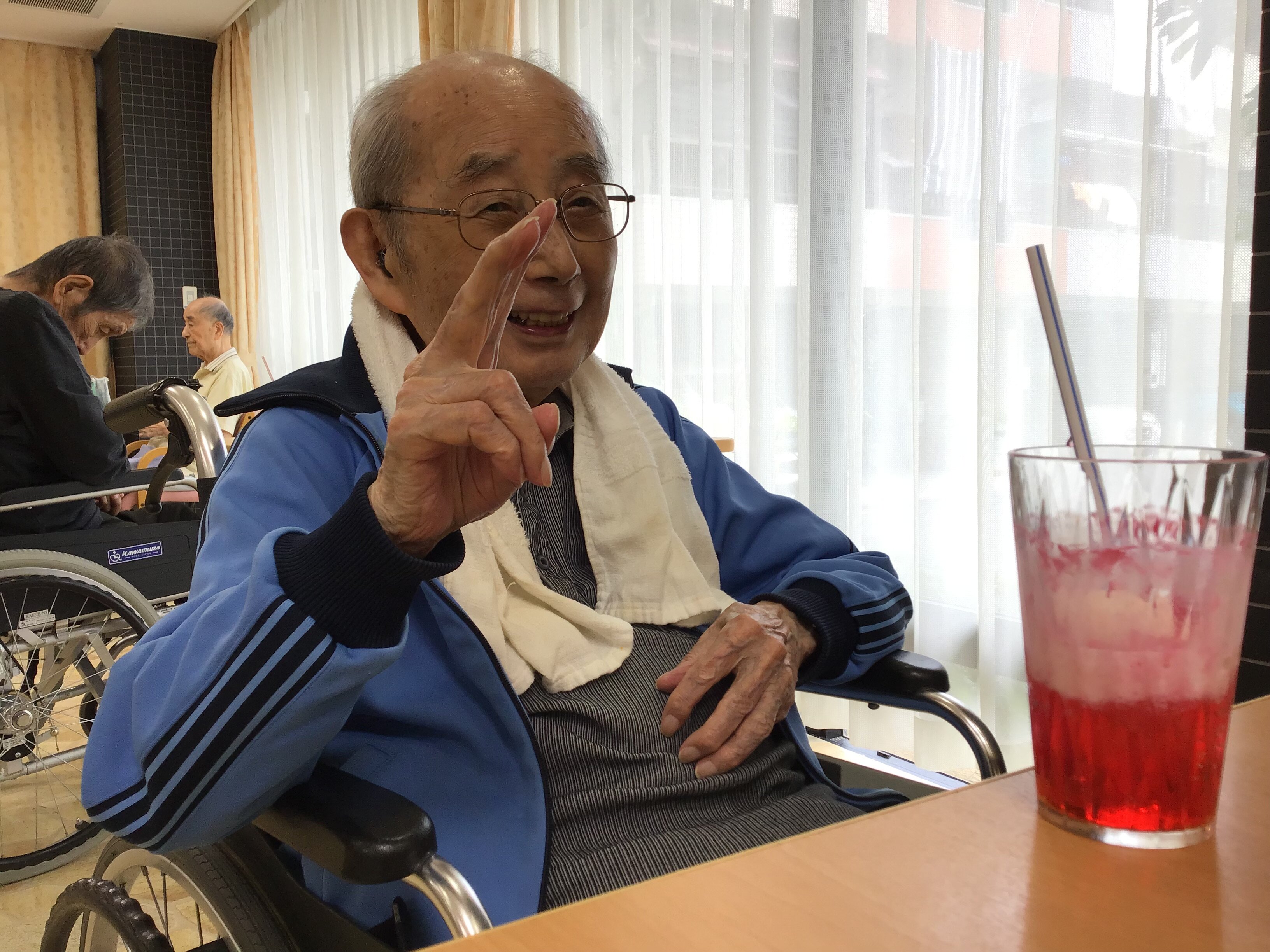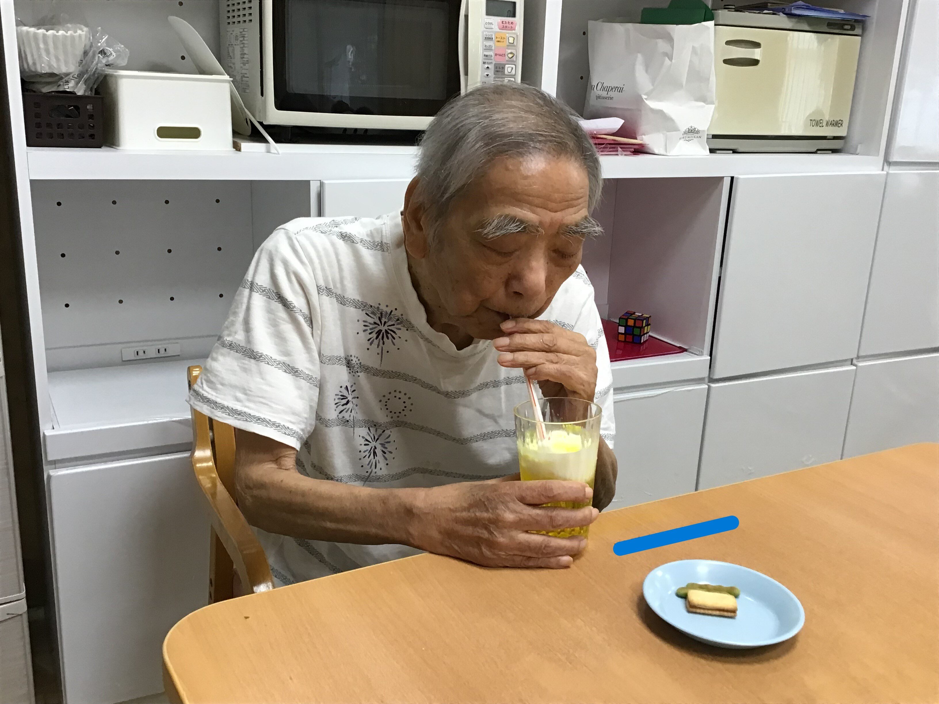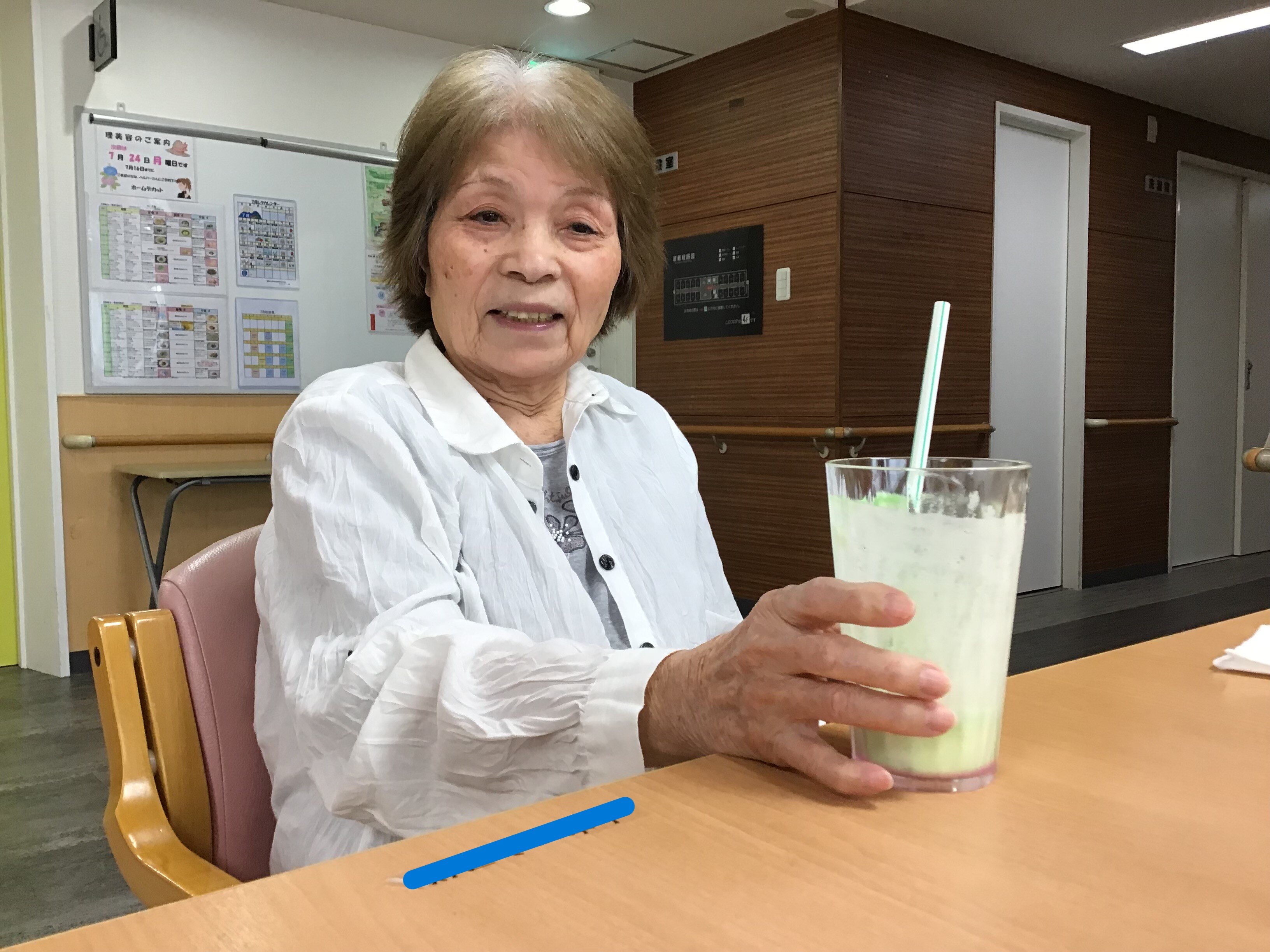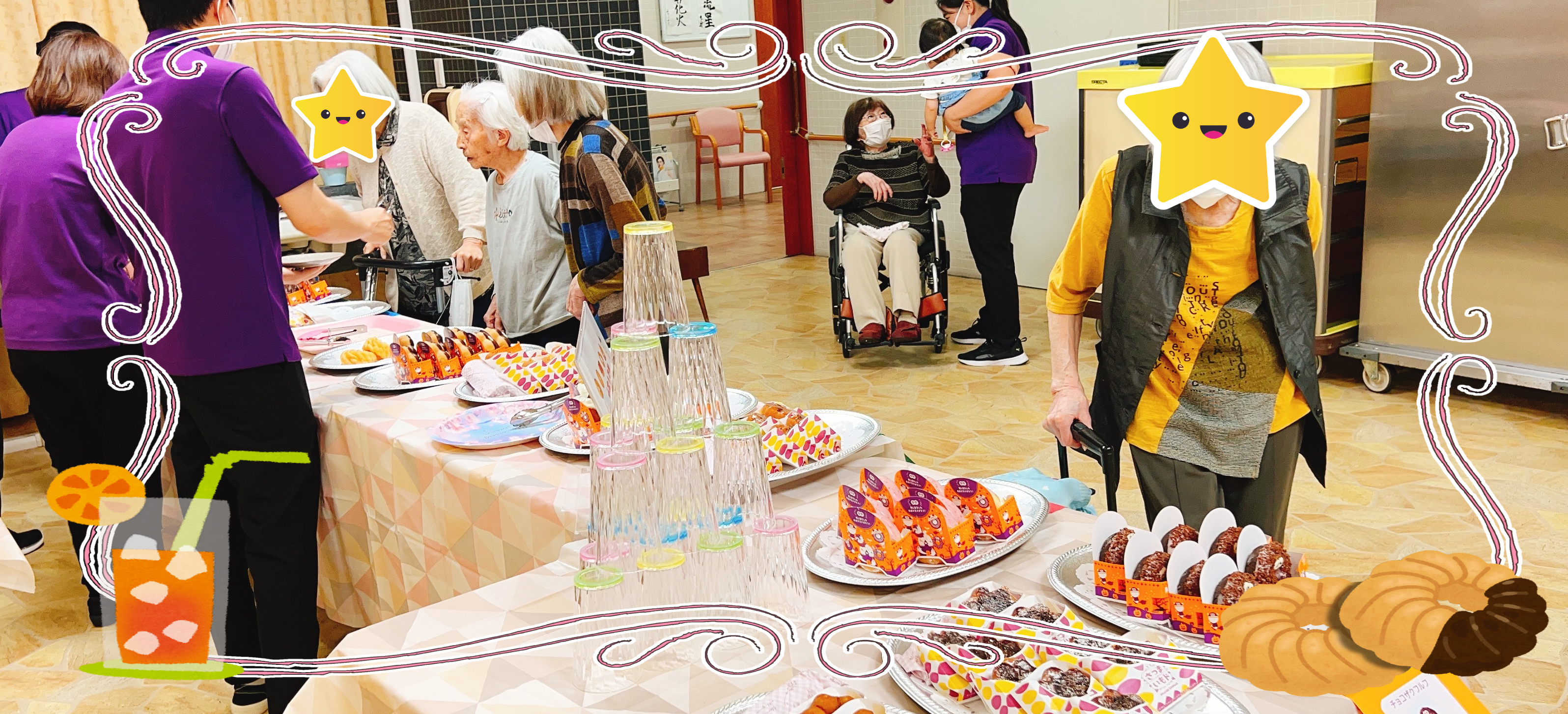 施設長が浴衣を着て皆さんに飲み物を配ってくれました!