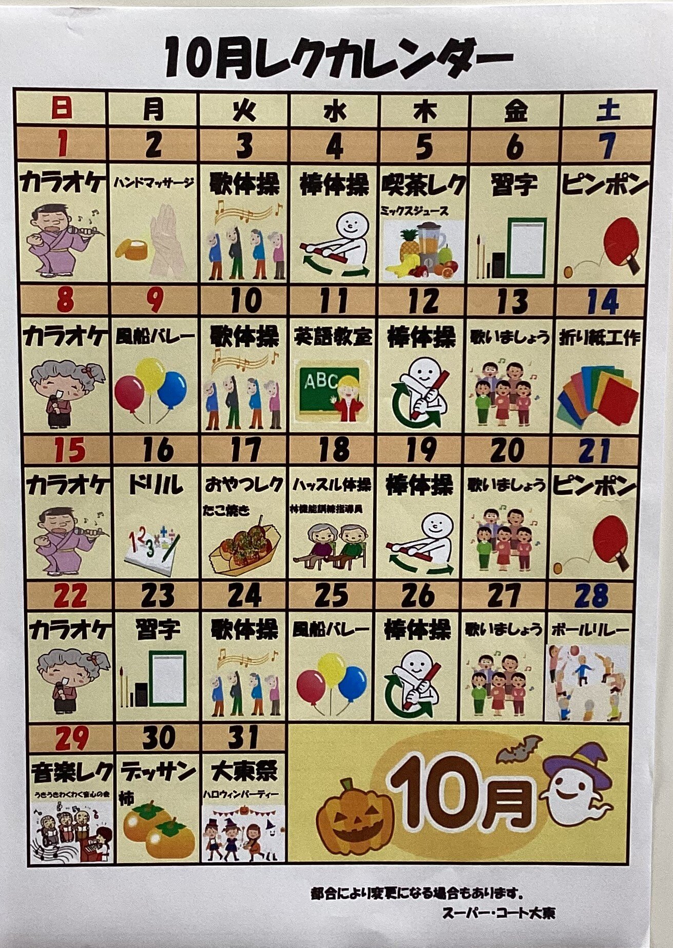 スーパー・コート大東では毎月楽しいレクリエーションを行っています!