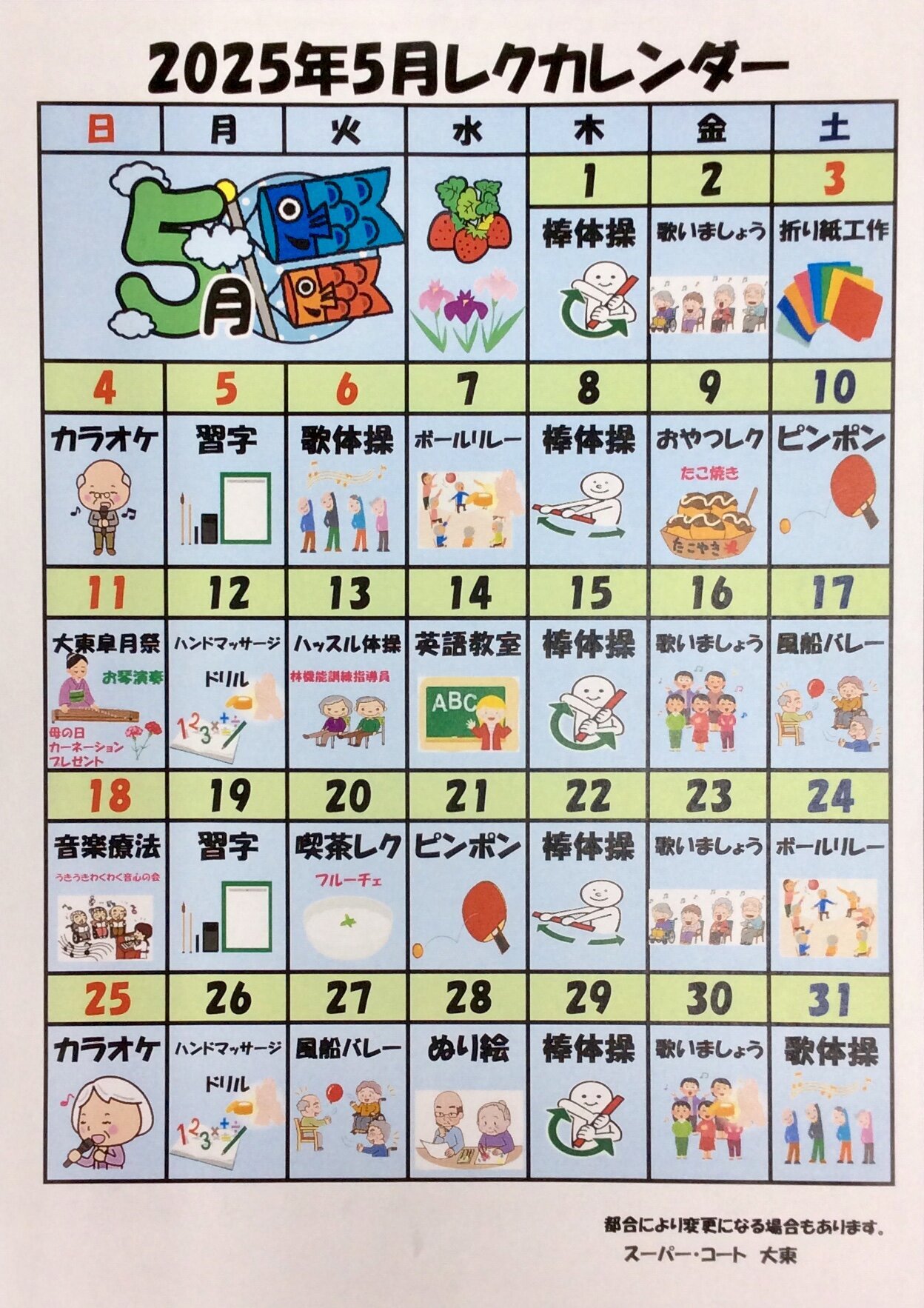 5月のレクカレンダーをご紹介いたします