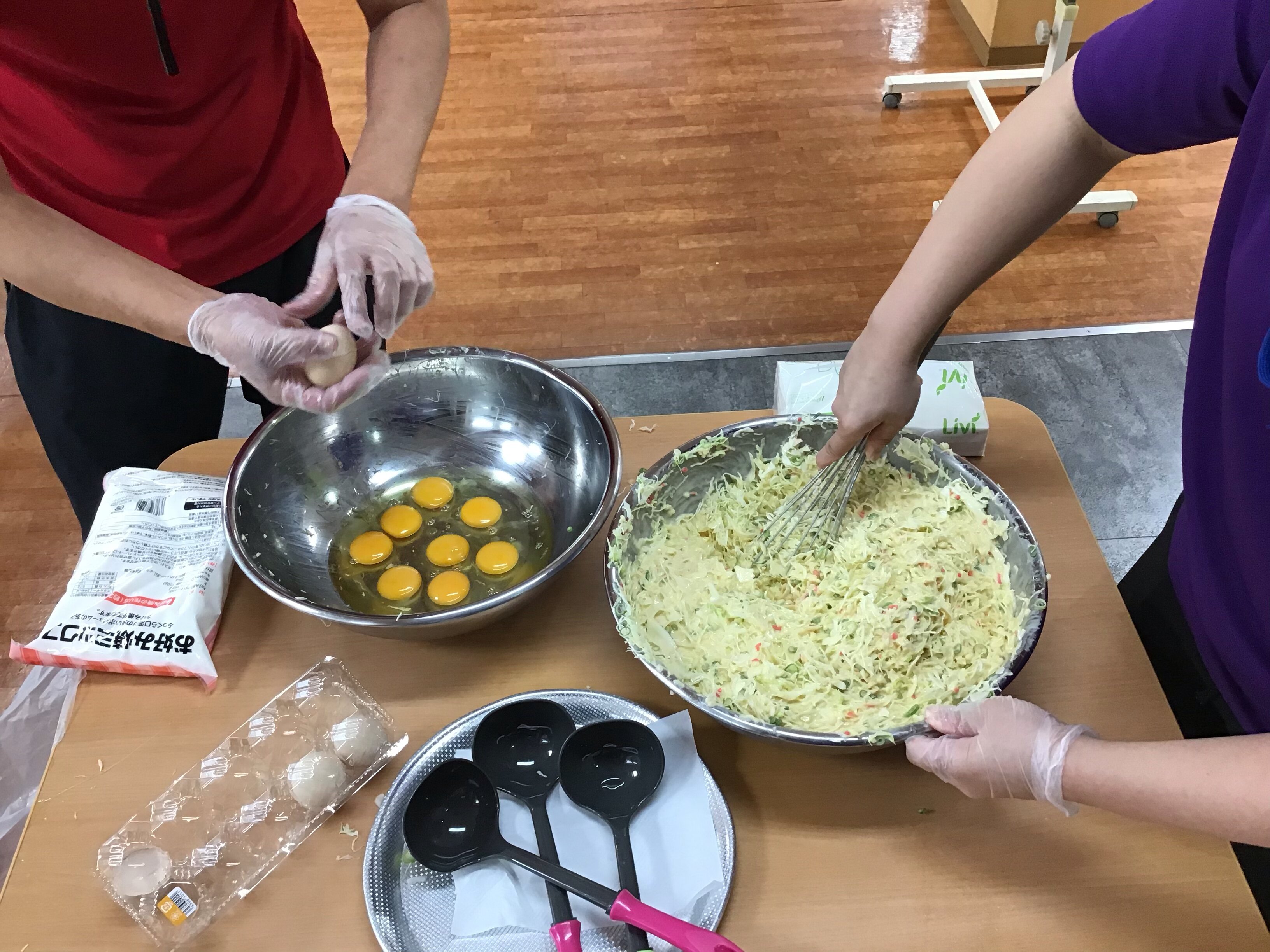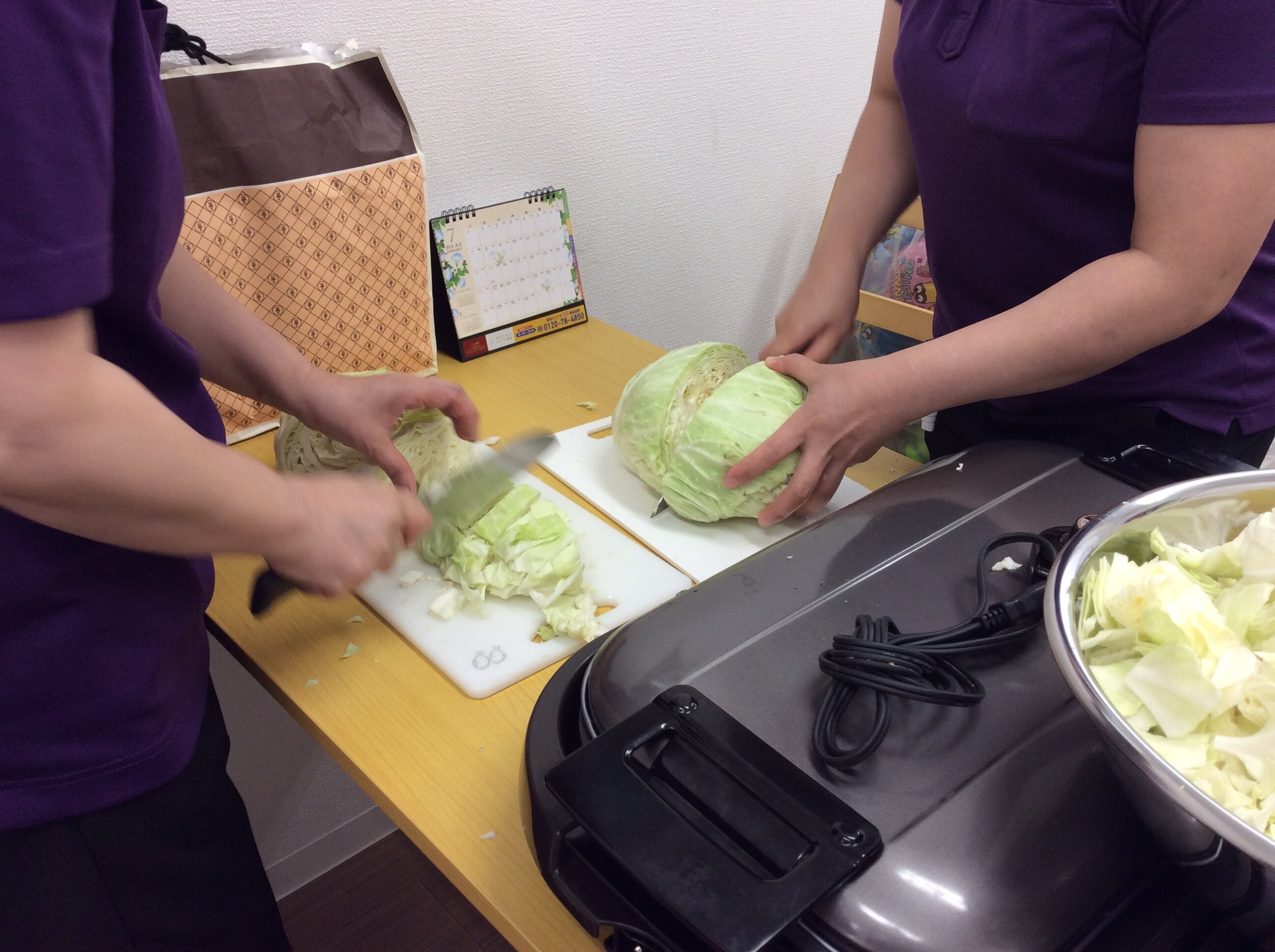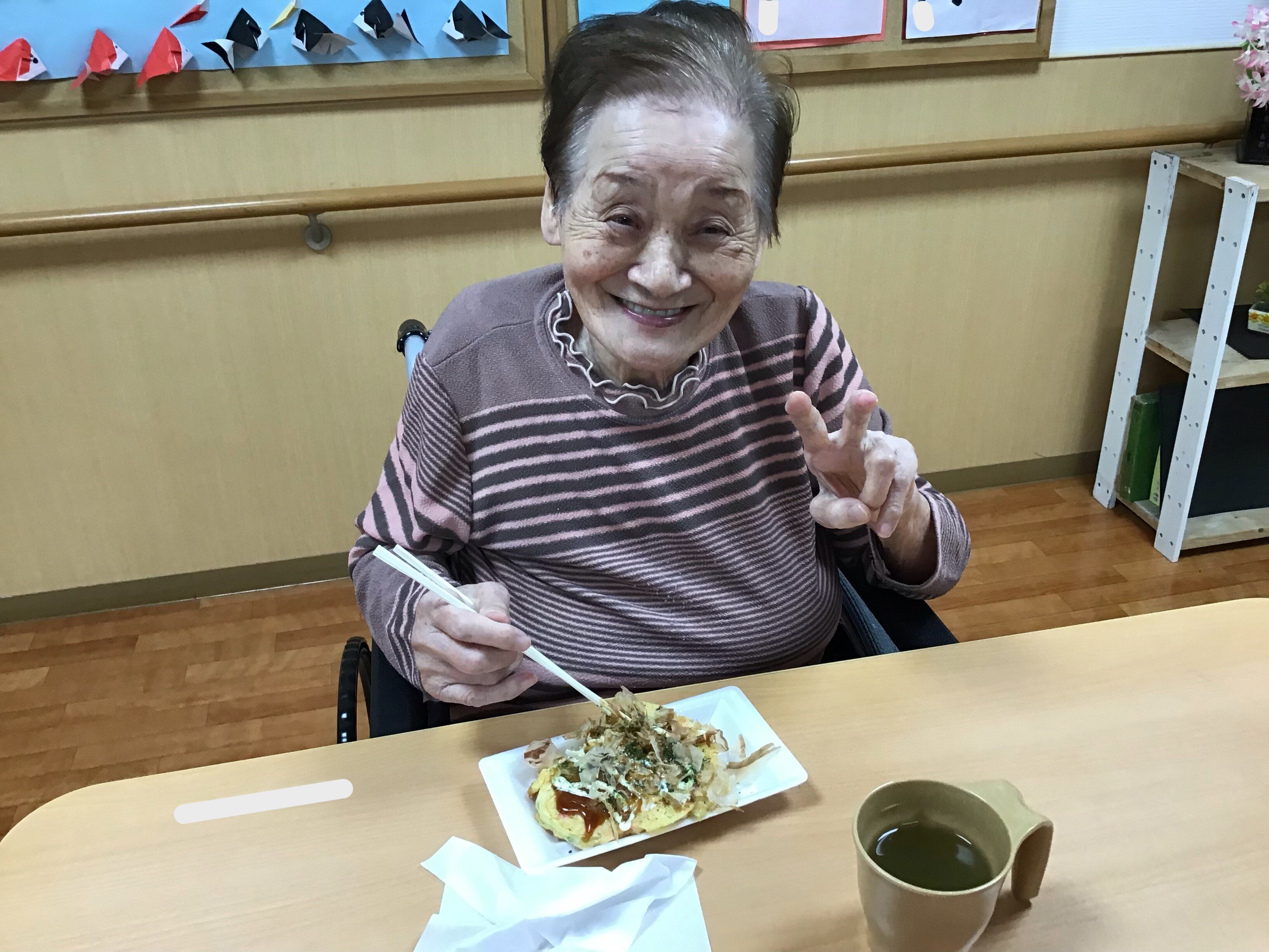 昨日は、おやつレクに『お好み焼き』を作りました。
