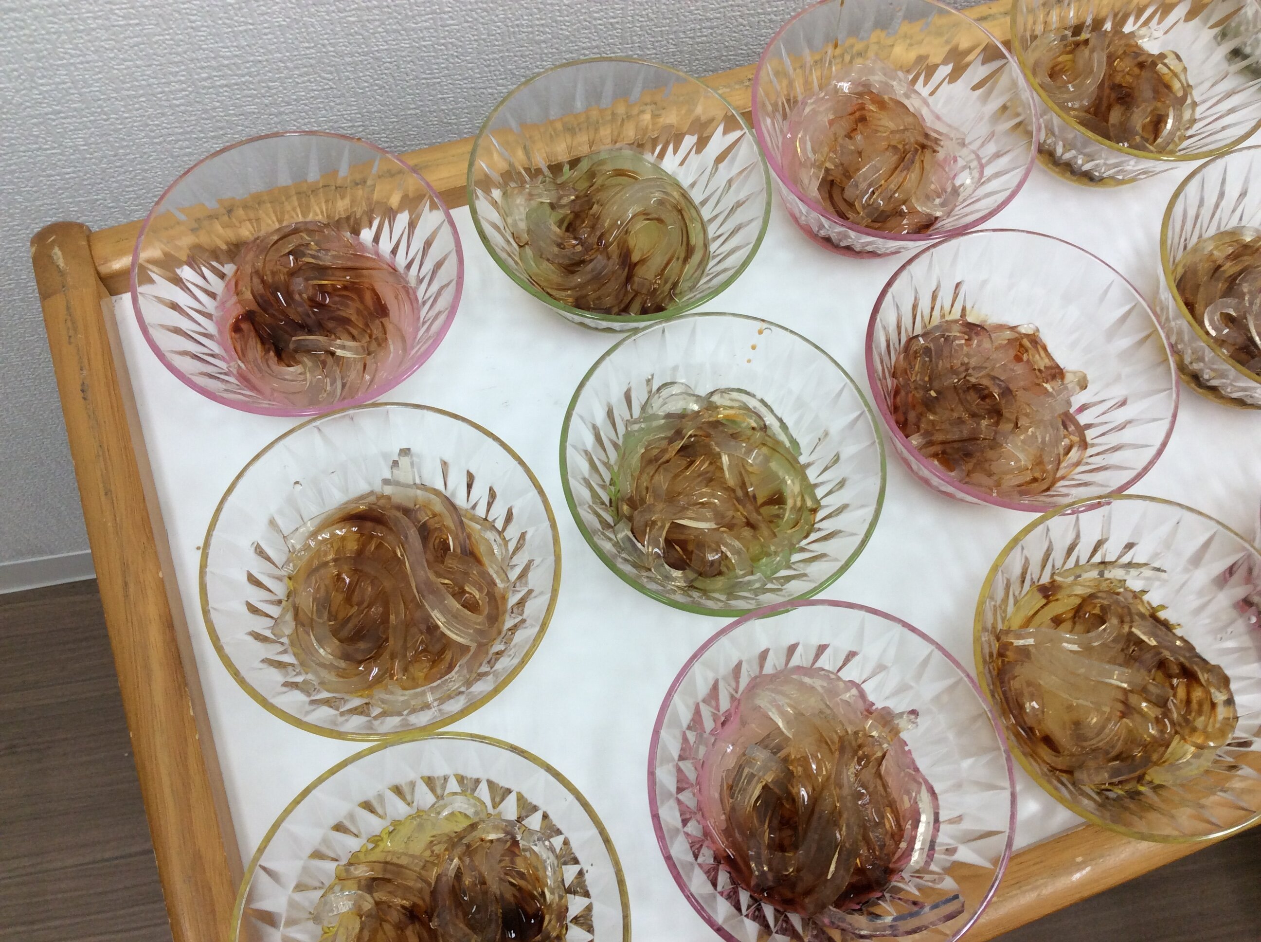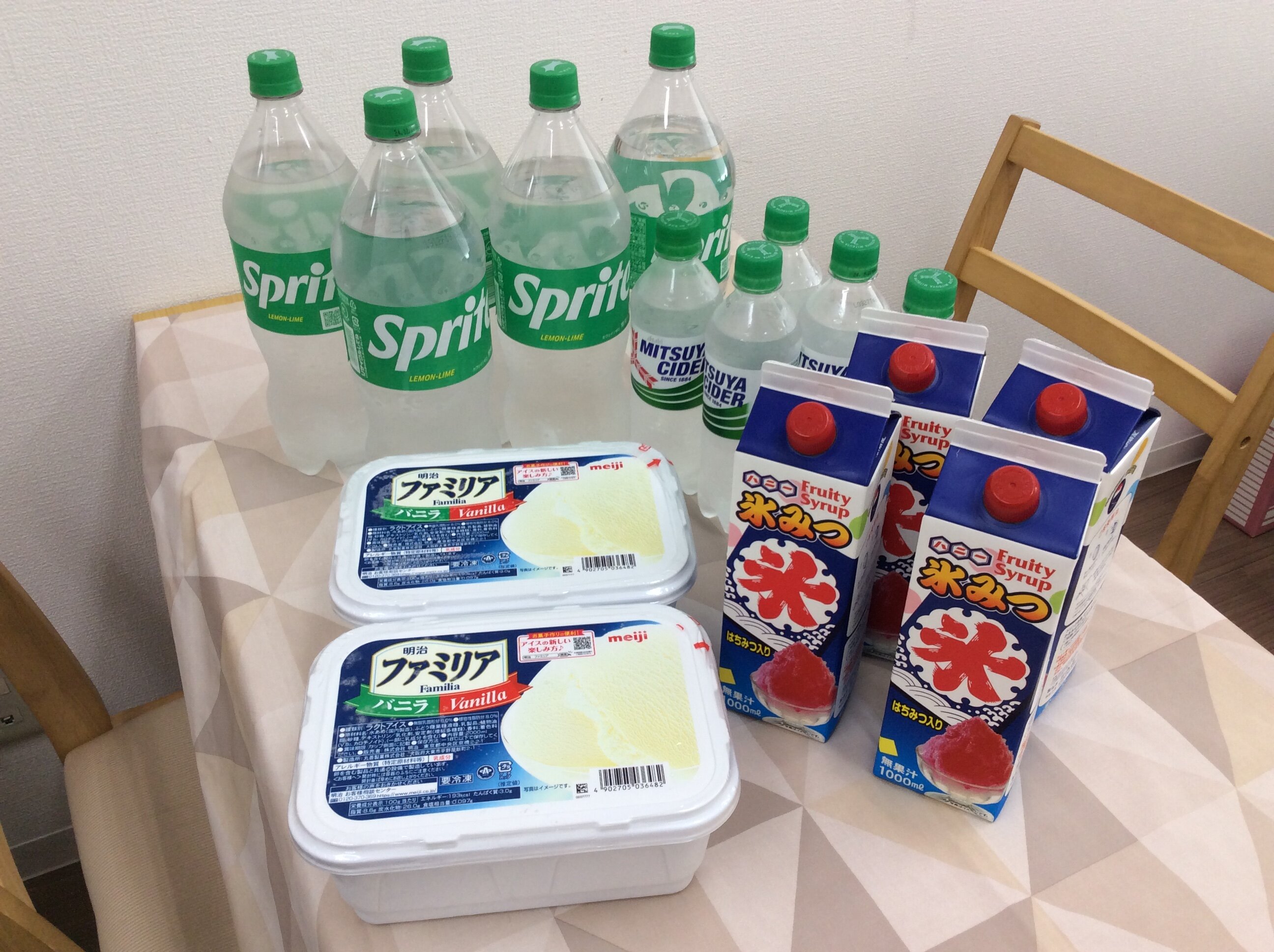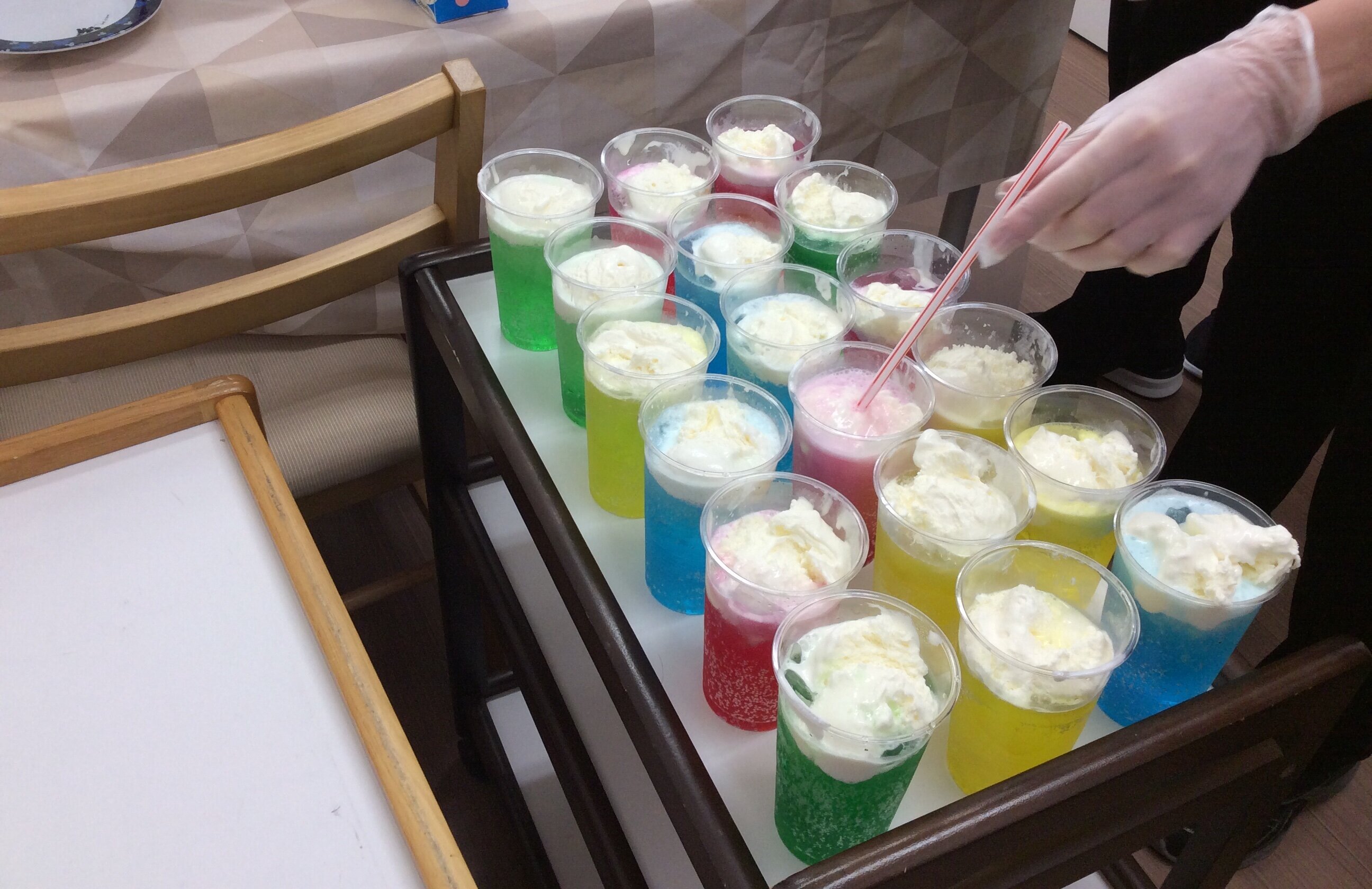 サイダーに氷みつを入れて、作っていきます。
