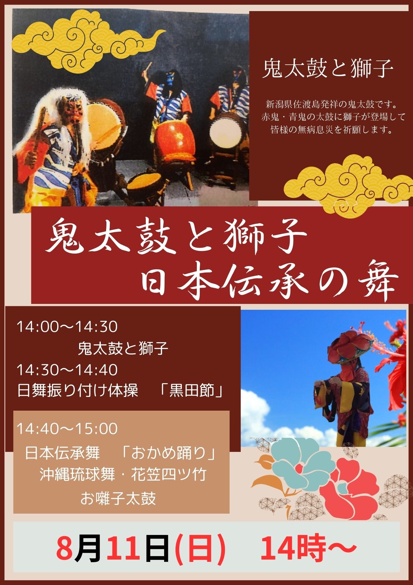 『鬼太鼓と獅子 日本伝承の舞』を披露していただきました。