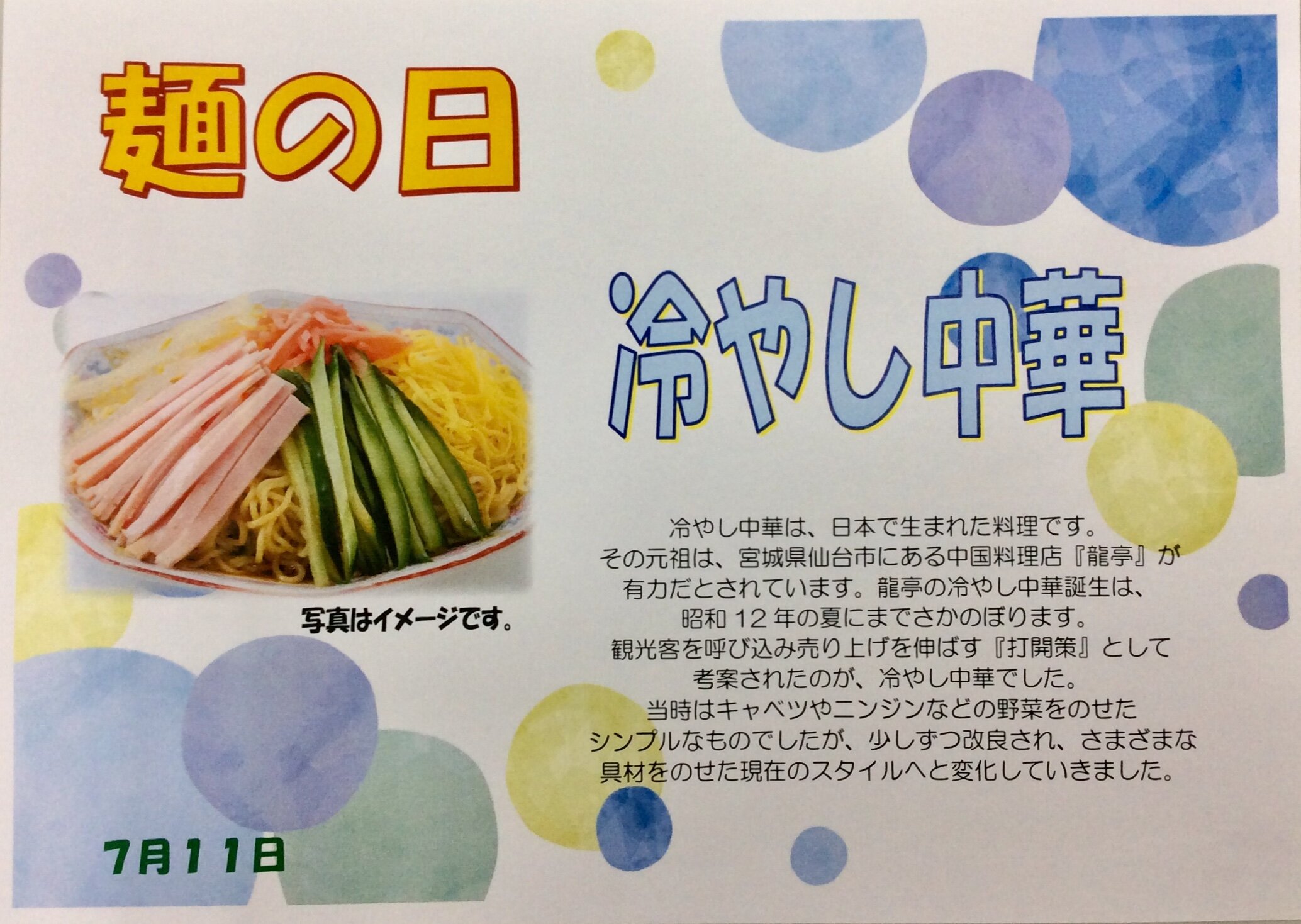 11日㈭は、『冷やし中華』です。