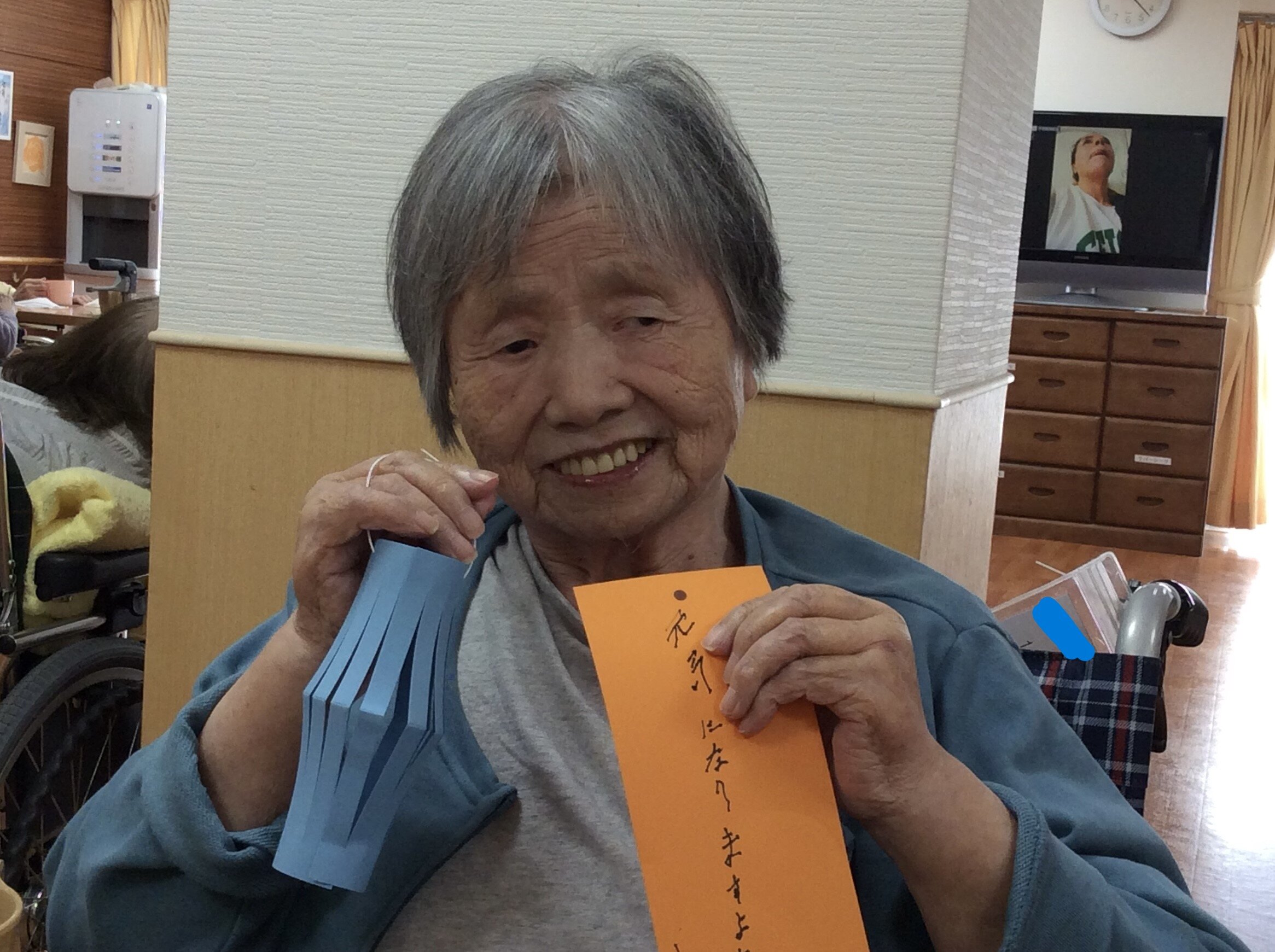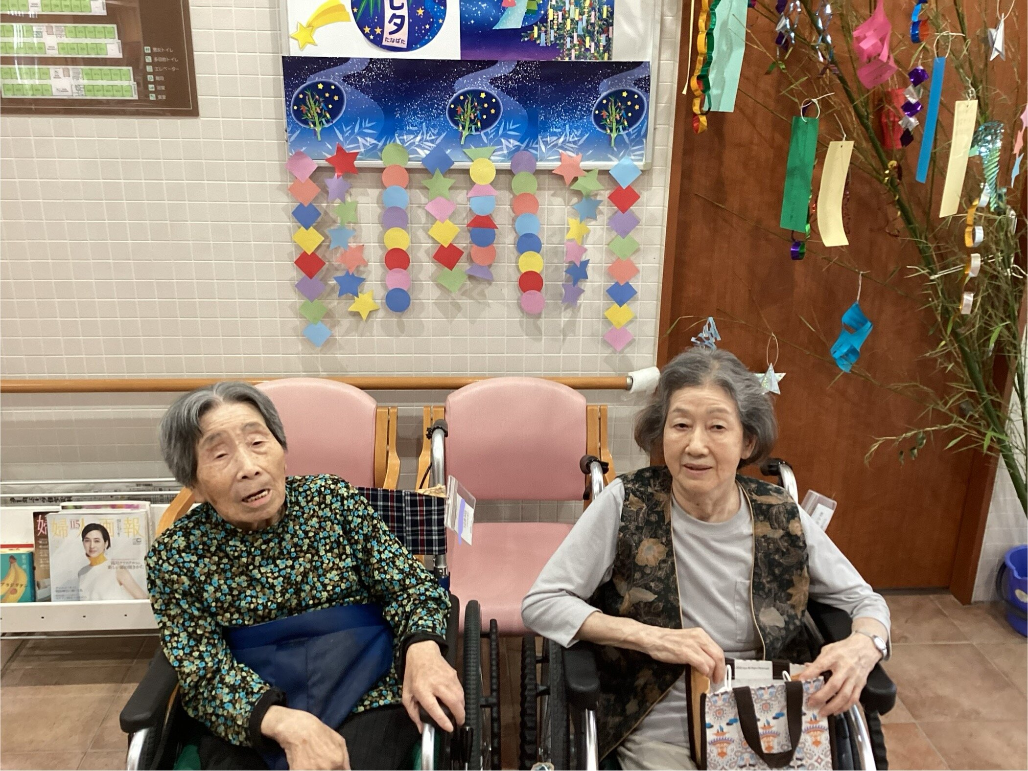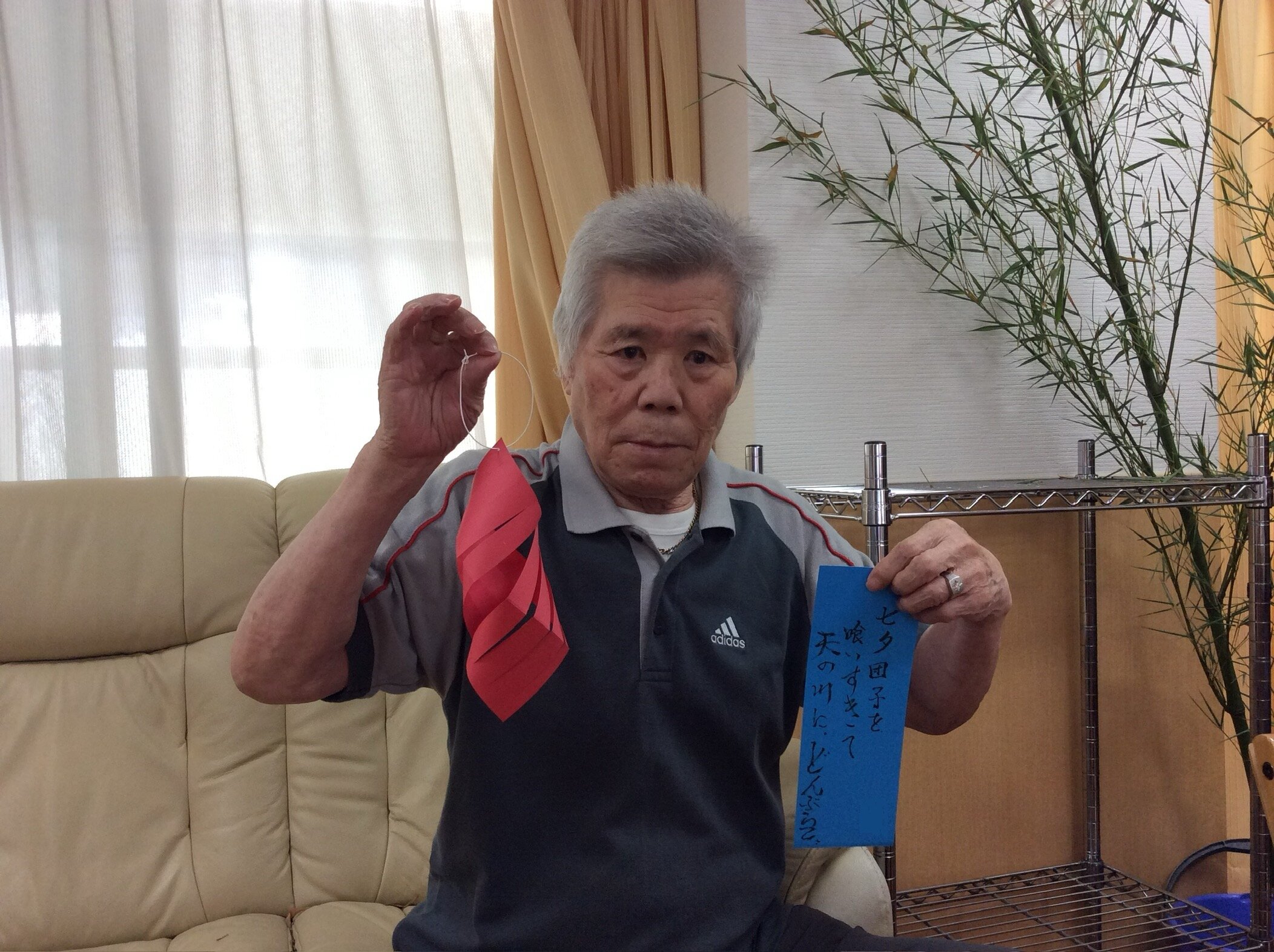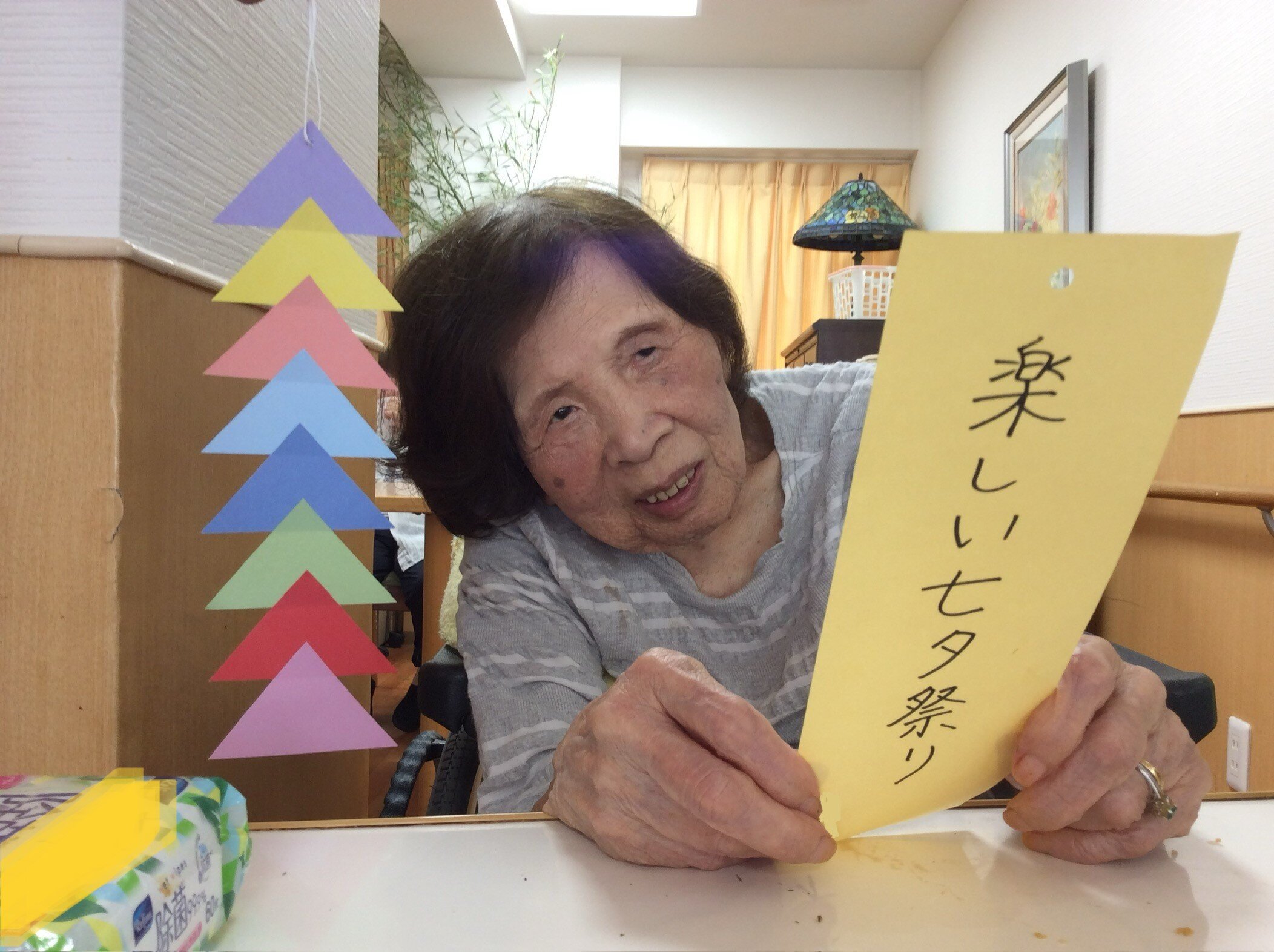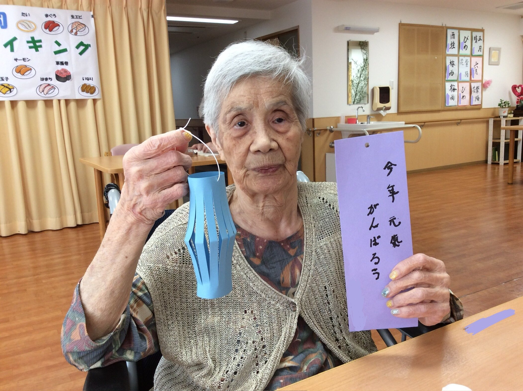 当施設では七夕の日の前日に、ご入居者の皆さまに短冊にお願い事を書いて頂きました✿