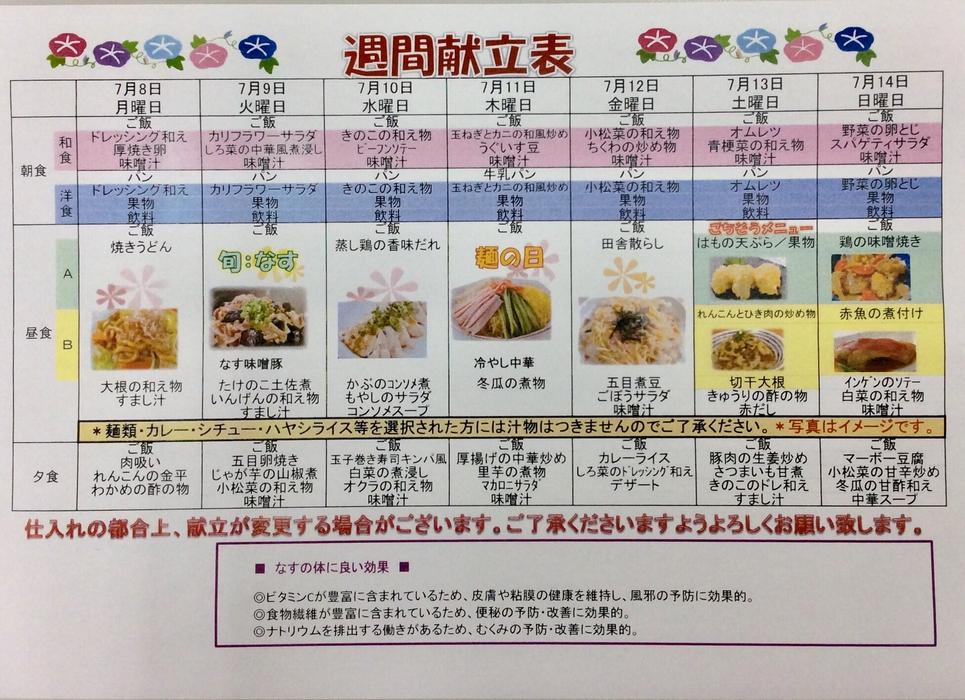 今回は、7/8~7/14の献立表をご紹介いたします。