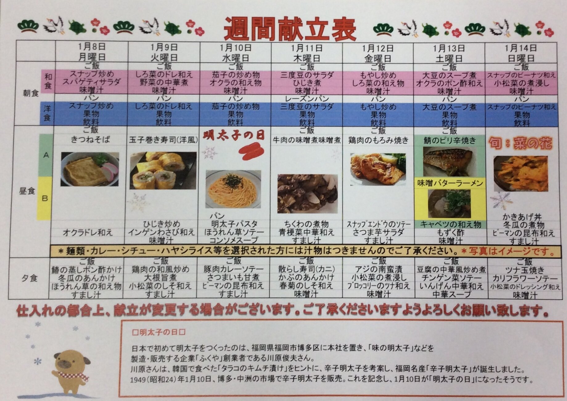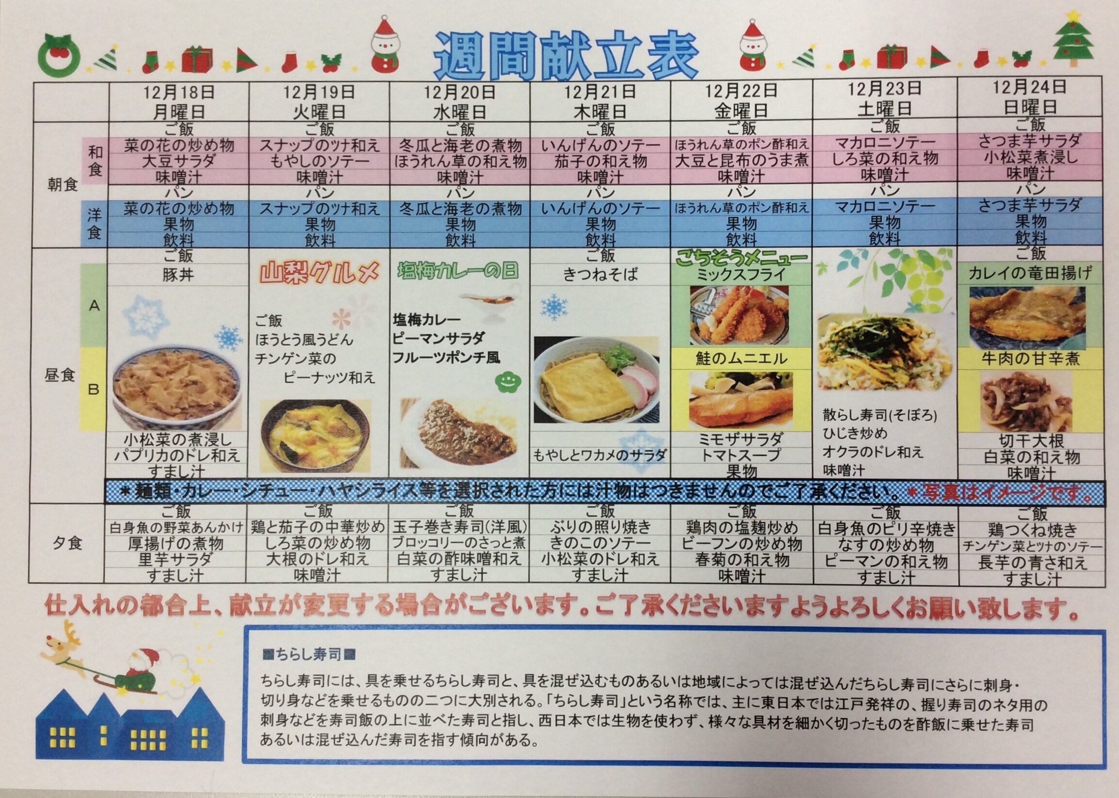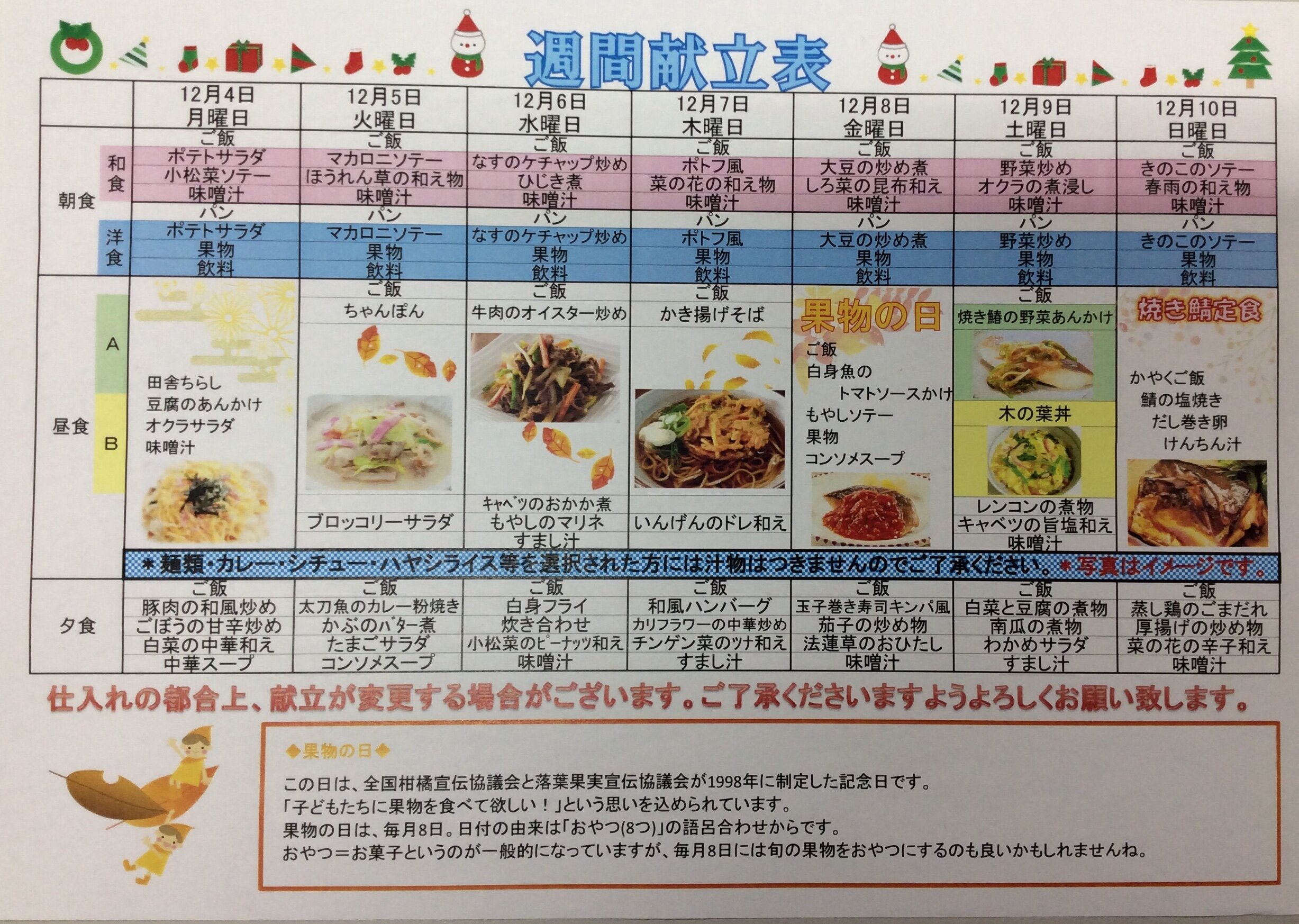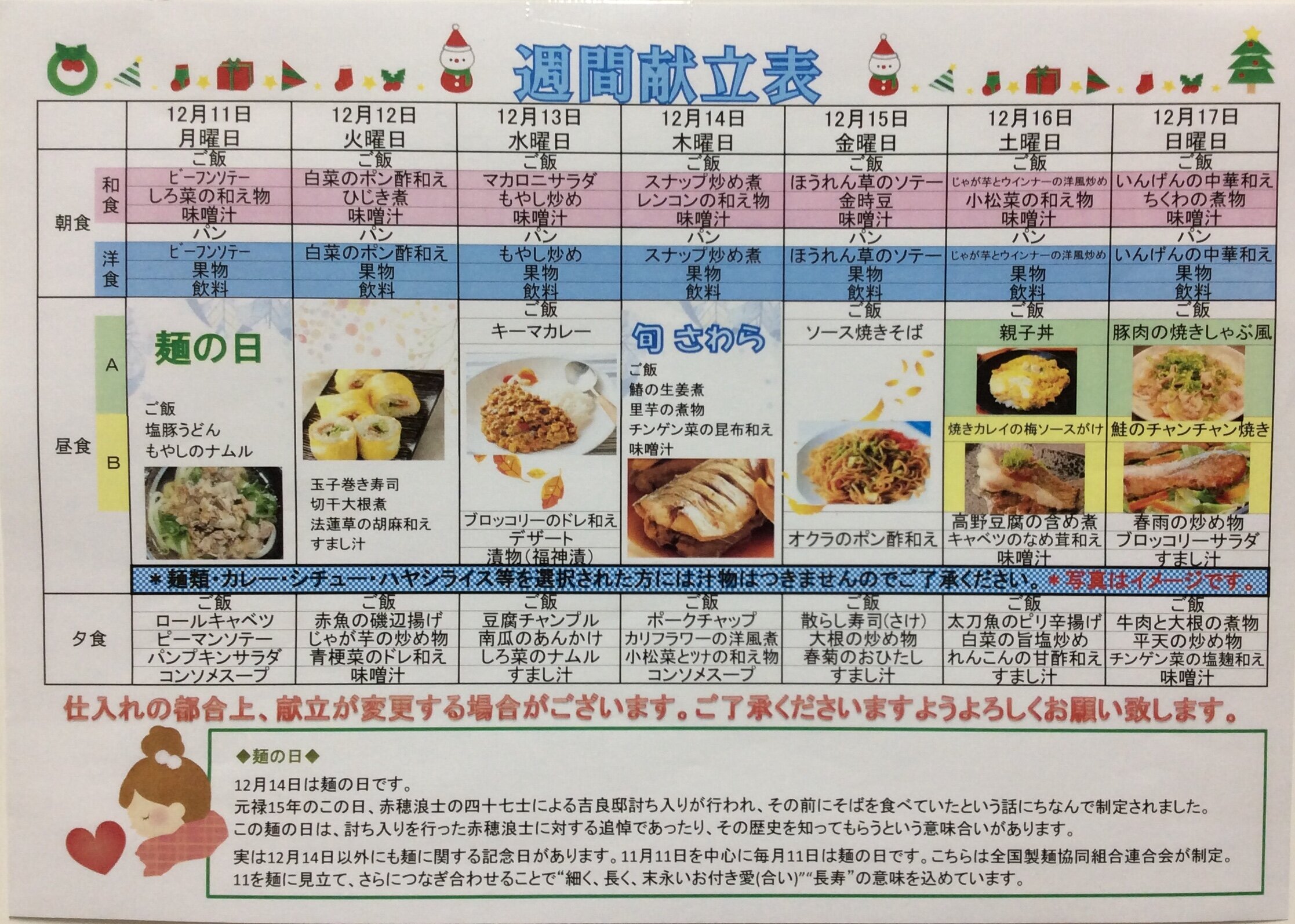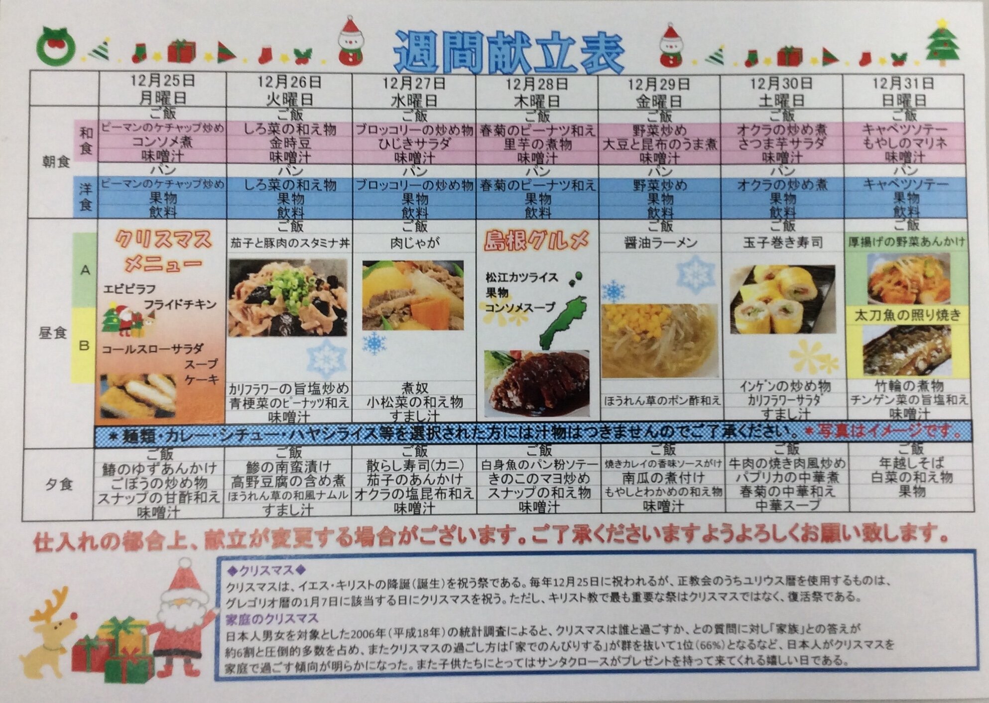 本日は、12/25~12/31の献立表をご紹介いたします。