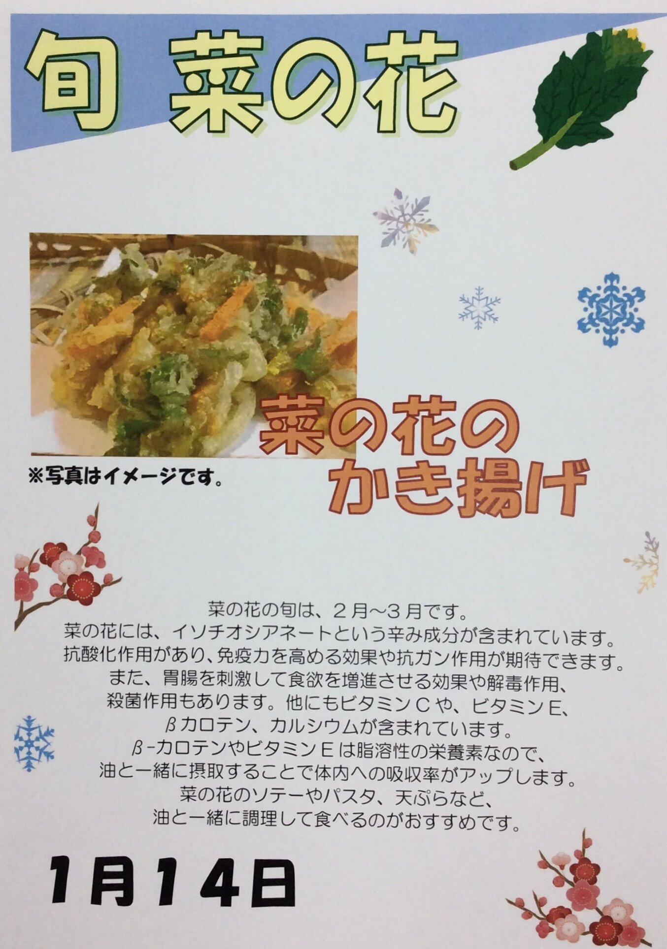 菜の花の旬は2月~3月ですが、旬の先取りで春を感じていただければと思います。