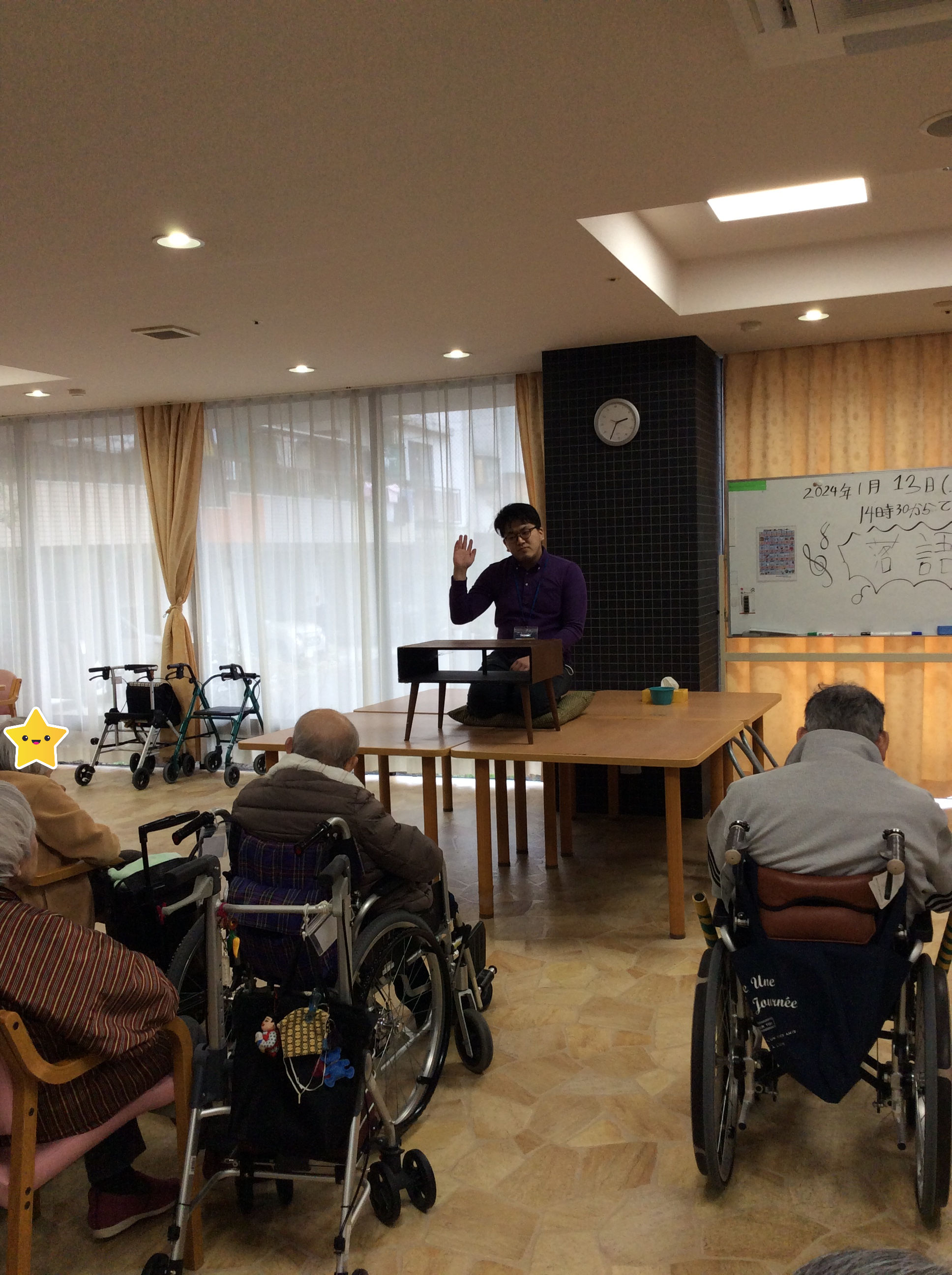 ・14時30分~レクリエーション 本日は『扇亭太優左』こと、職員による落語でした。