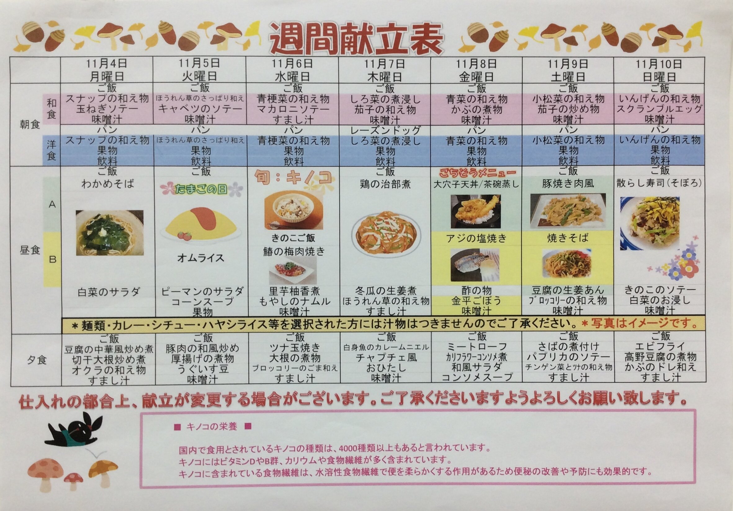 11/4~11/10の献立表をご紹介いたします。