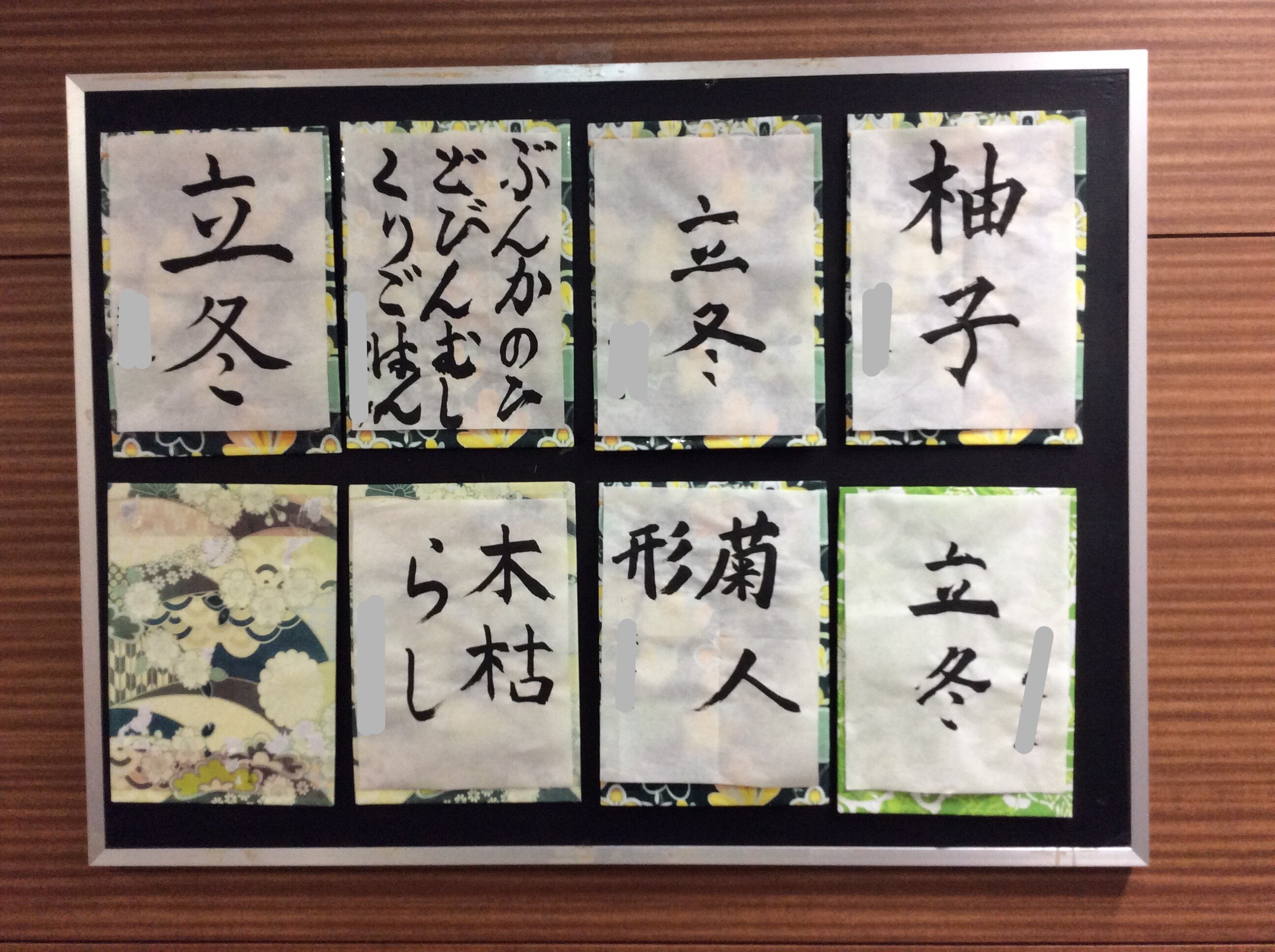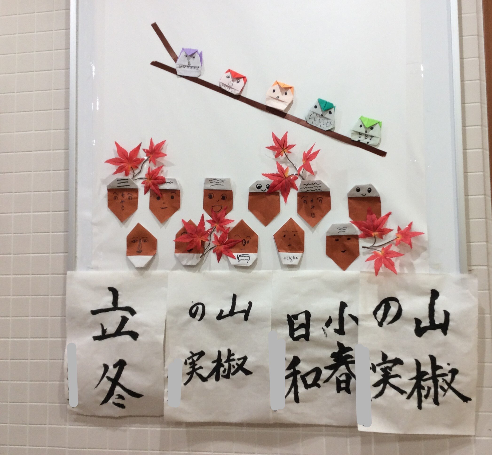 ご入居者の習字や折り紙工作の作品もございます。